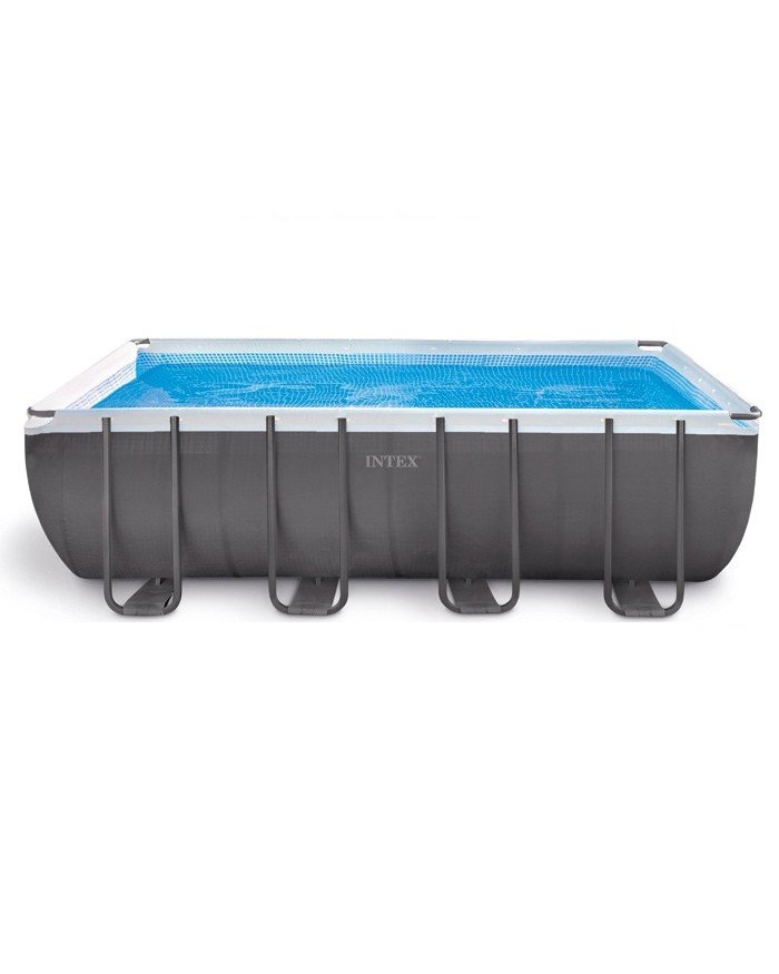 Сборный каркасный бассейн серии Intex Prism Frame прямоугольной формы с фильтр-насосом и лестницей.