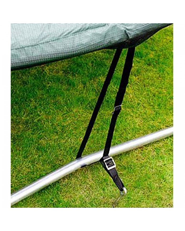 Комплект крепления батута к земле обеспечит его безопасность в ветреный день.