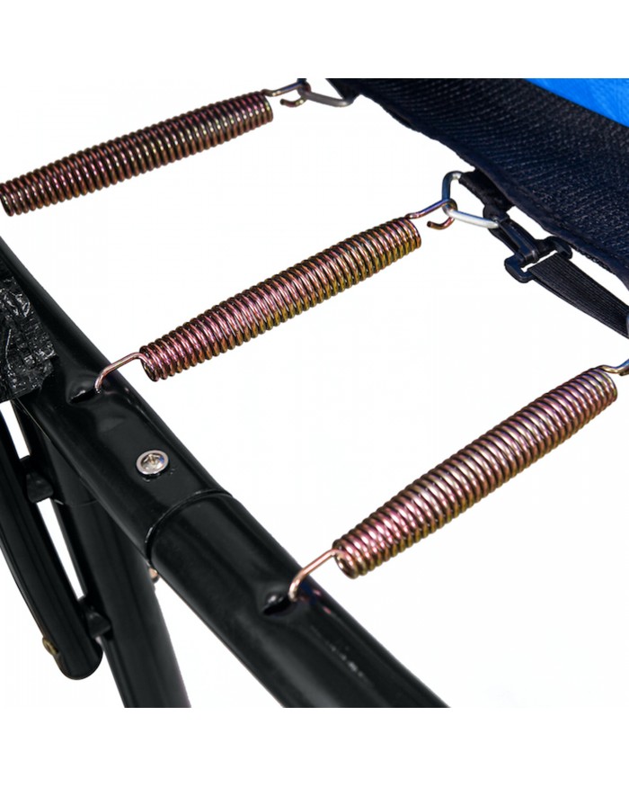 Также стоит обратить внимание на используемое количество пружин. Даже на самом маленьком по диаметру батуте размером 5 футов (152 см) используется 30 пружин, что позволяет увеличить высоту прыжка. Пружины выполнены из высококачественной стали, которые имеют повышенную защиту от износа и растягивания, тем самым позволяя продлить срок службы батута. Для обеспечения безопасности пользователя, пружины закрыты защитным чехлом.