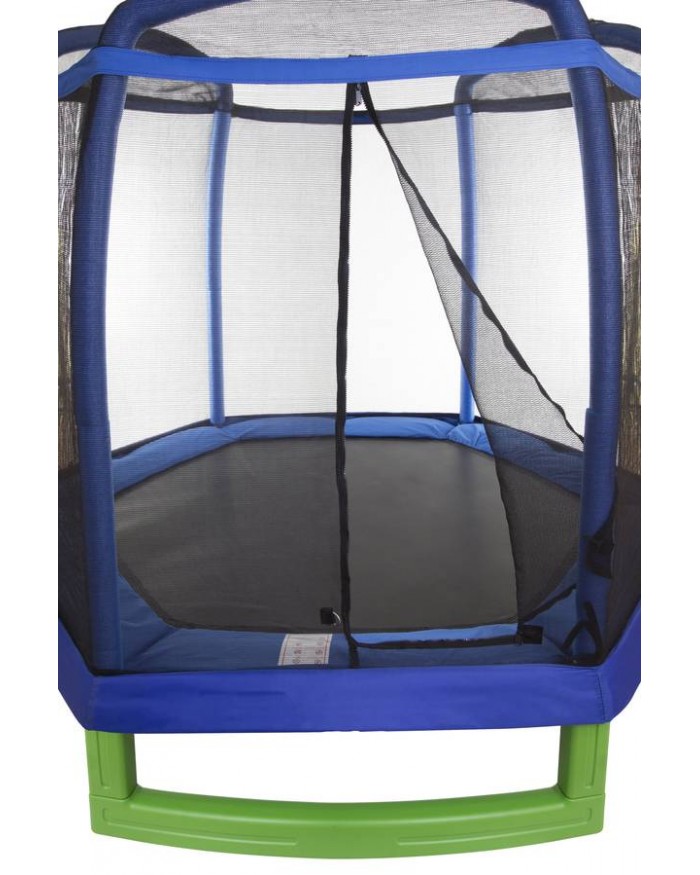 Диаметр прыжкового полотна, изготовленного из прочного полипропилена (Перматрона) – 172см, размер каркаса - 222см. Нагрузка на конструкцию должна быть не более 120кг. Высокие прыжки обеспечиваются 36 пружинами с защитным покрытием. Высота защитной сетки – 147см, высота рамы от земли – 45см.