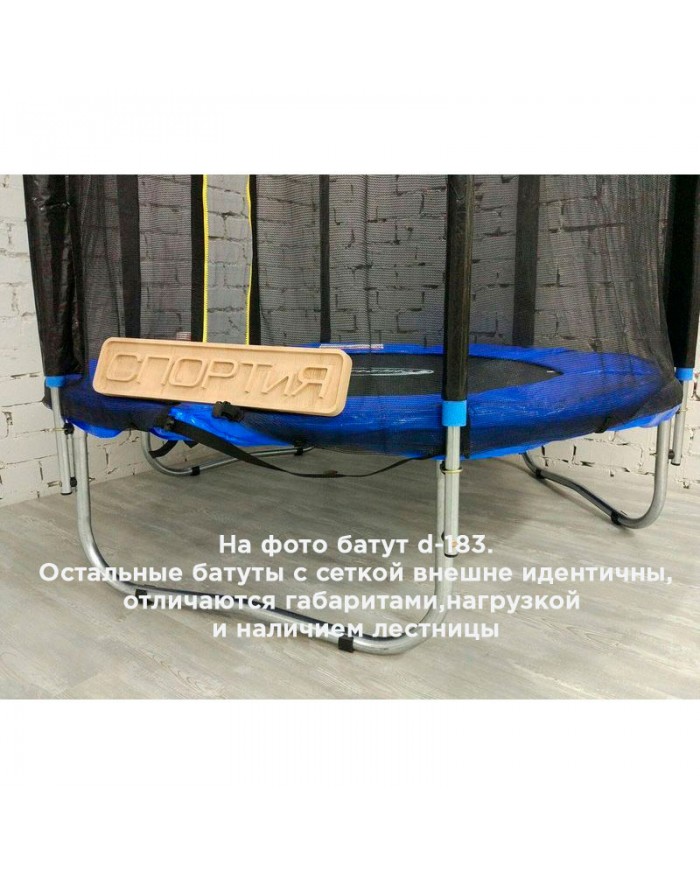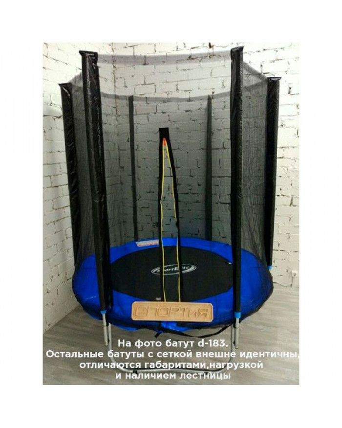 Батут 8FT 2,44 м с защитной сеткой это надежный и недорогой вариант дачного батута, оборудованный защитной сеткой из высококачественного полиэстра, защищающей вашего ребенка во время прыжков.