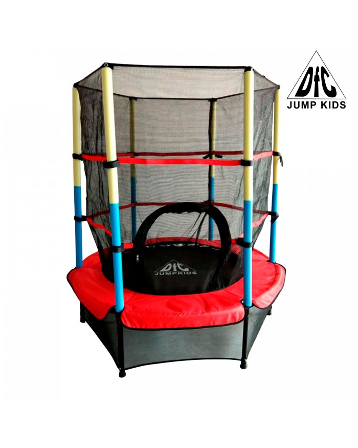 Батут DFC серии JUMP KIDS для домашнего и уличного применения. Предназначен для детей в возрасте от 3 до 6 лет, весом до 45 кг. Прыжковая поверхность из прочного полипропилена «Перматрон». Пружины на данной модели – это эластичные амортизирующие троса из нейлона. Сверху они закрыты защитным матом.