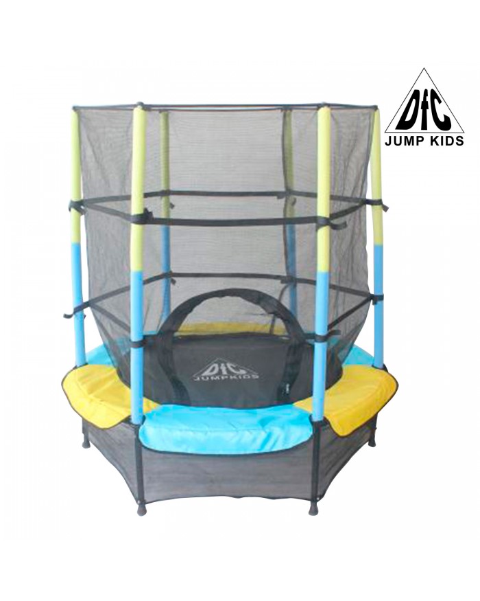 Батут DFC серии JUMP KIDS для домашнего и уличного применения. Предназначен для детей в возрасте от 3 до 6 лет, весом до 45 кг. Прыжковая поверхность из прочного полипропилена «Перматрон». Пружины на данной модели – это эластичные амортизирующие троса из нейлона. Сверху они закрыты защитным матом.