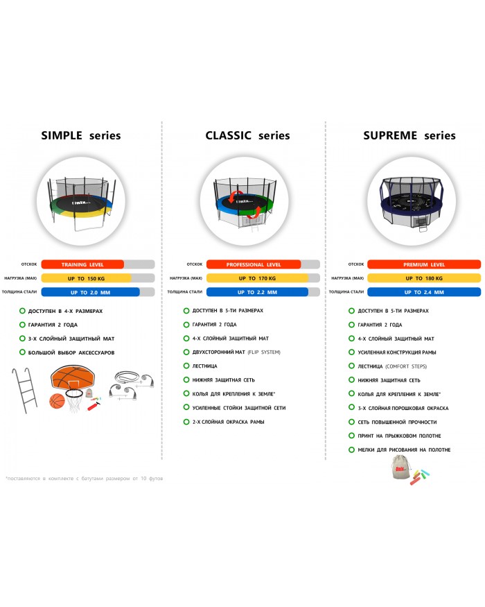 Серия Simple батутов торговой марки UNIX line - это простота и легкость сборки, качественные материалы, широкий выбор размеров и цветовых решений.