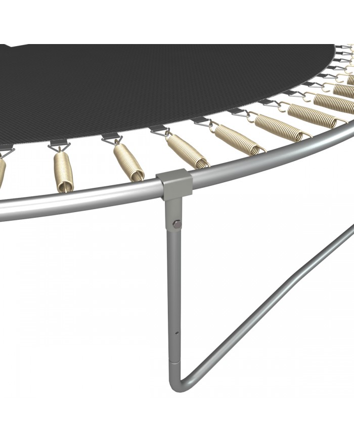 Металлический каркас батутов выполнен из прочной гальванизированной стали с использованием системы креплений деталей рамы батута «T-Conneсtor» (толщина стали 2.0 мм), что обеспечивает высокую надежность рамы и уровень безопасности пользователя.