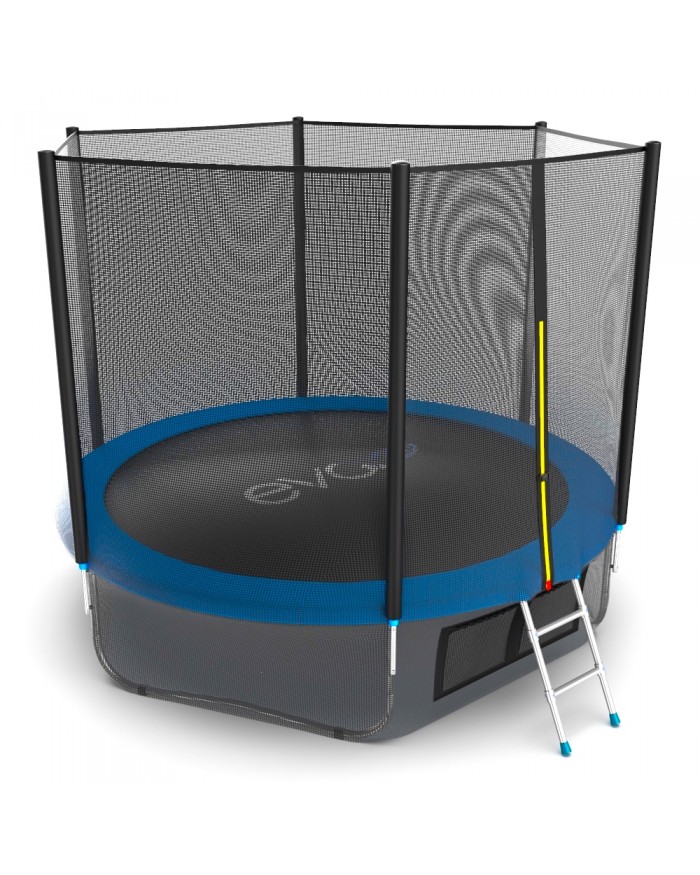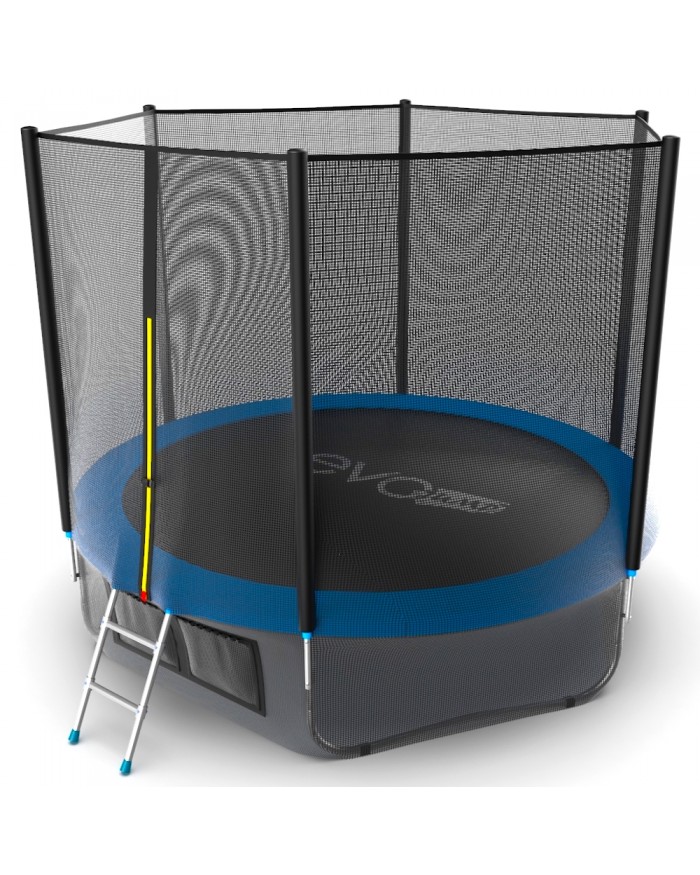 - Каркас изделия изготовлен из высокопрочной гальванизированной стали. В конструкции Evo Jump External 10ft используется 60 упругих пружин и 6 надежных стоек.