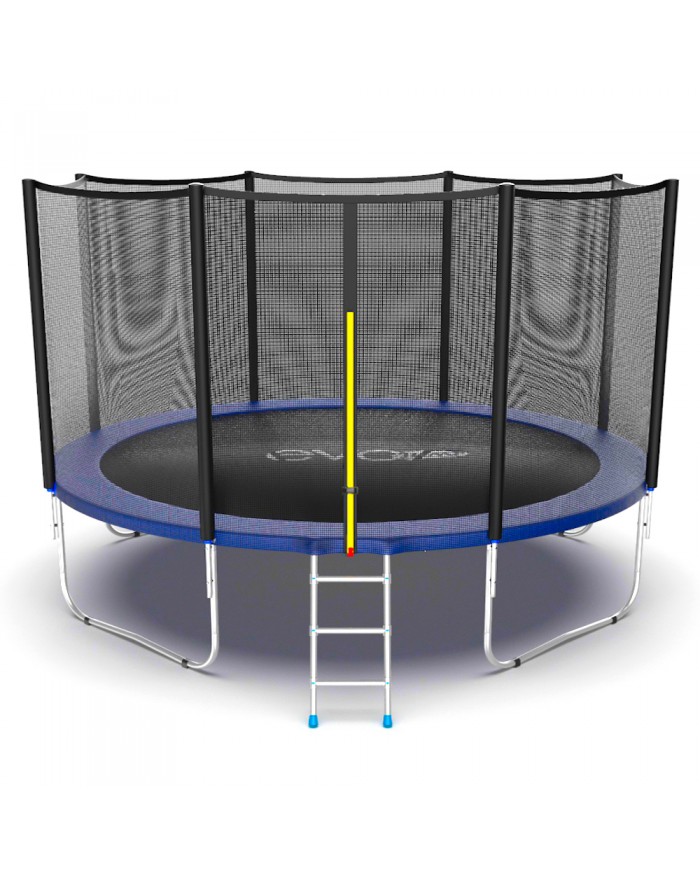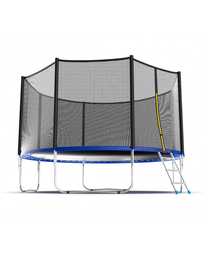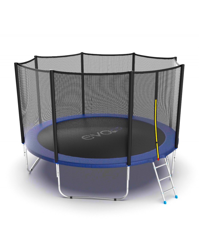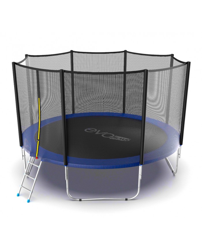 - Каркас Evo Jump External 12ft изготовлен из гальванизированной стали, в конструкцию включены 80 прочных, упругих пружин и 8 надежных стоек.