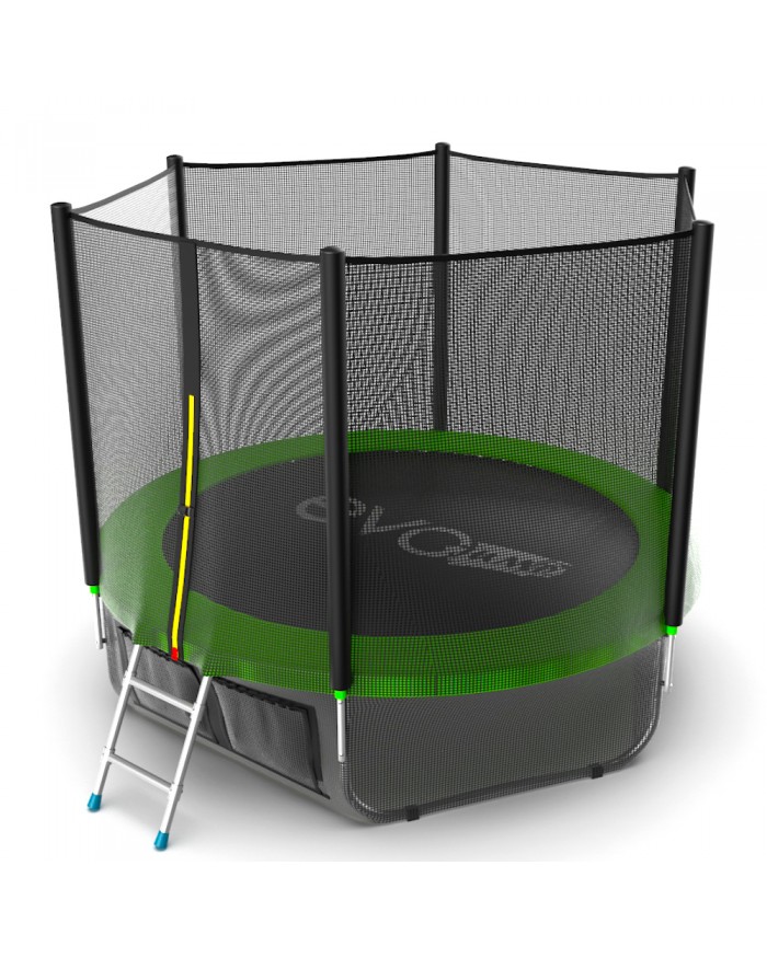 - В комплект модели Evo Jump External 8ft входят: металлическая лестница, верхняя и нижняя сетки, делающие изделие максимально удобным и безопасным в использовании.