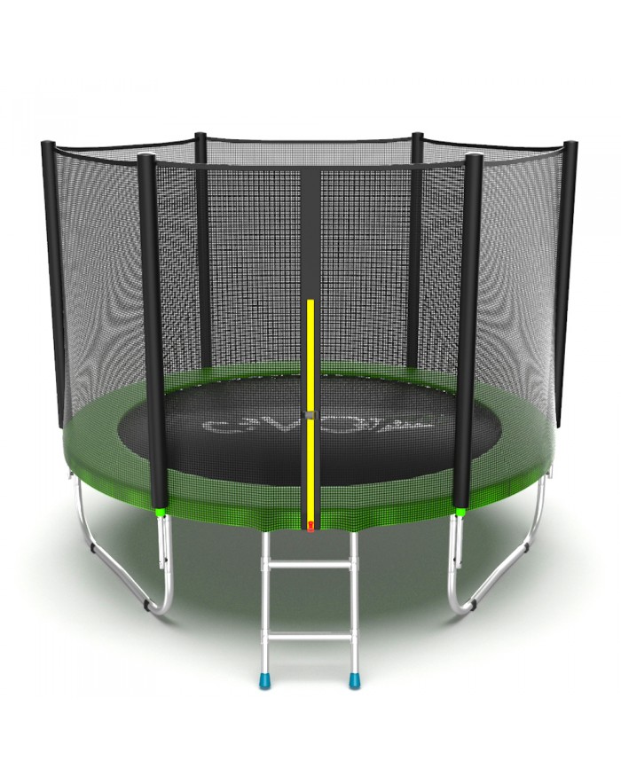 - Батут Evo Jump External 8ft понравится компактными размерами и сдержанным дизайном. Он выполнен в природном зеленом оттенке, который органично вписывается в окружающий ландшафт. Компания «Stemsport» рекомендует его для уличного использования или установки внутри специализированного помещения.