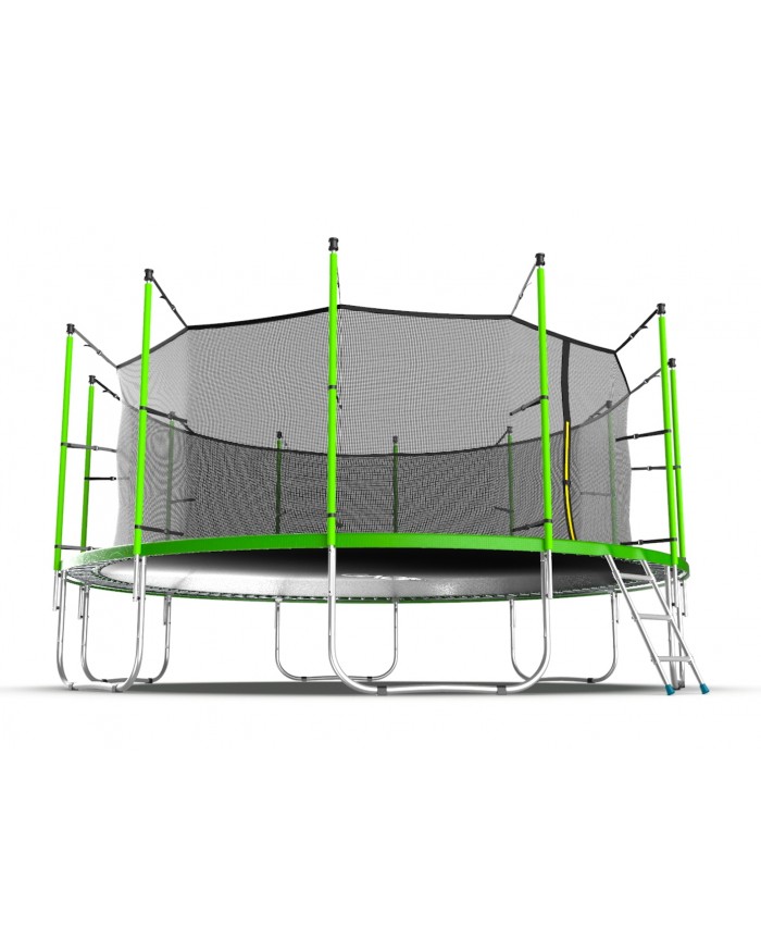 Батут представляет собой не только отличную игровую зону для детей, но и своеобразный спортивный тренажер, с помощью которого стимулируется кровообращение, совершенствуется координация и чувство равновесия, развивается вестибулярный аппарат, формируется выносливость и укрепляются мышцы всего тела. Всего 15-20 минут прыжков на батуте заменяют час изнурительных тренировок в тренажерном зале, а 10 минут – пробежку дистанции в 3 км. Прочный и легкий в сборке батут EVO Jump Internal 16FT (Green), диаметром 488 см, принесет море радости и здоровья Вам и Вашим детям. Это будет настоящий островок развлечения для всей Вашей семьи.