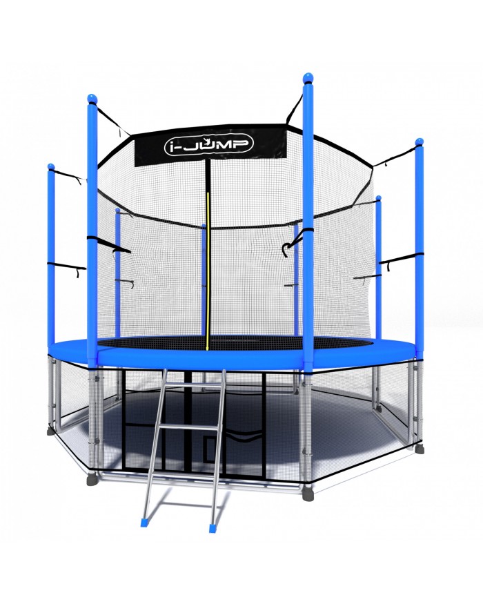 Батуты i-JUMP разработаны в соответствии с последними тенденциями в области безопасности и изготовлены из высококачественных материалов. Данный батут имеет сдвоенные опоры основания, обеспечивающие хорошую устойчивость. Прыжковое полотно сделано в США из полипропиленового мата Permatron с защитой от УФ излучения. Пружины имеют бочкообразную форму для правильного распределения сопротивления металла при растяжении. Все металлические части (опоры, пружины и прочее) изготовлены из оцинкованной стали для предотвращения коррозии.