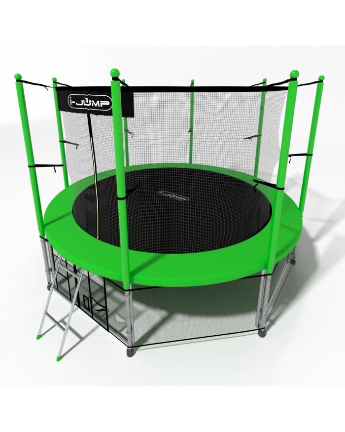 Батуты i-JUMP разработаны в соответствии с последними тенденциями в области безопасности и изготовлены из высококачественных материалов. Данный батут имеет сдвоенные опоры основания, обеспечивающие хорошую устойчивость. Прыжковое полотно сделано в США из полипропиленового мата Permatron с защитой от УФ излучения. Пружины имеют бочкообразную форму для правильного распределения сопротивления металла при растяжении. Все металлические части (опоры, пружины и прочее) изготовлены из оцинкованной стали для предотвращения коррозии.