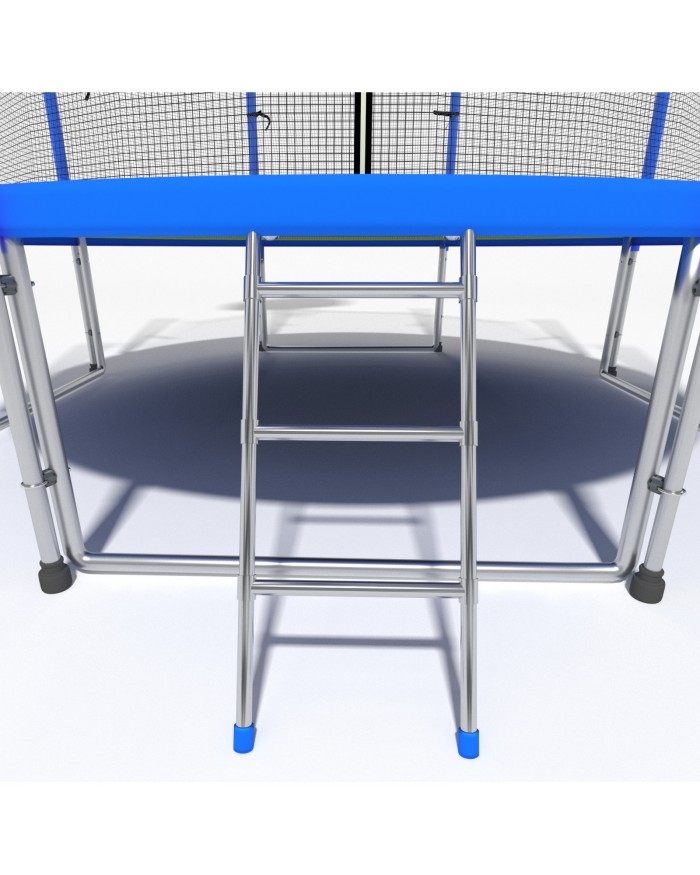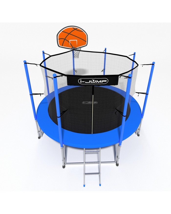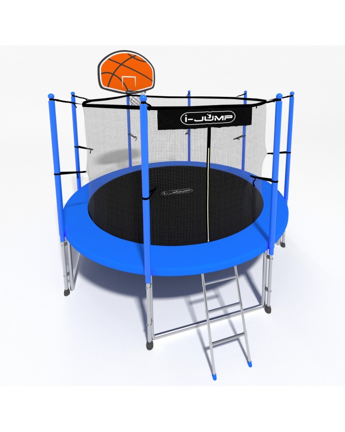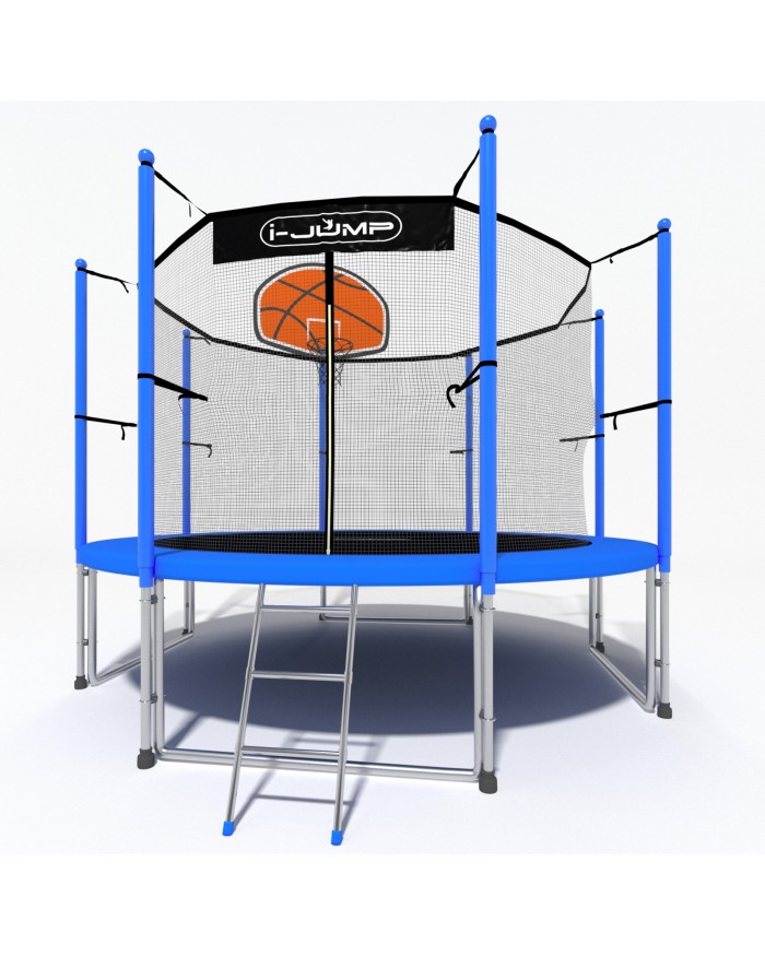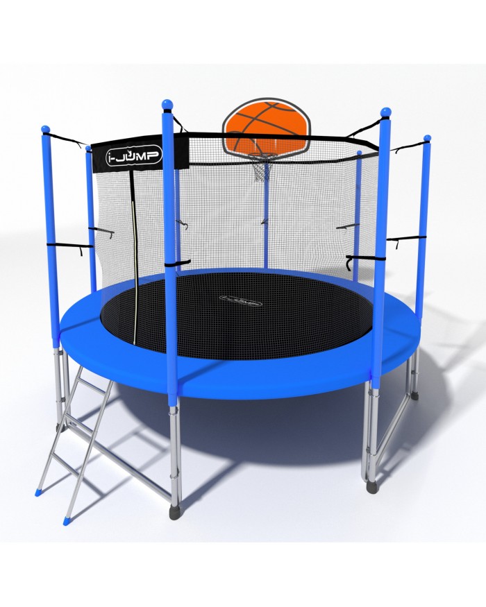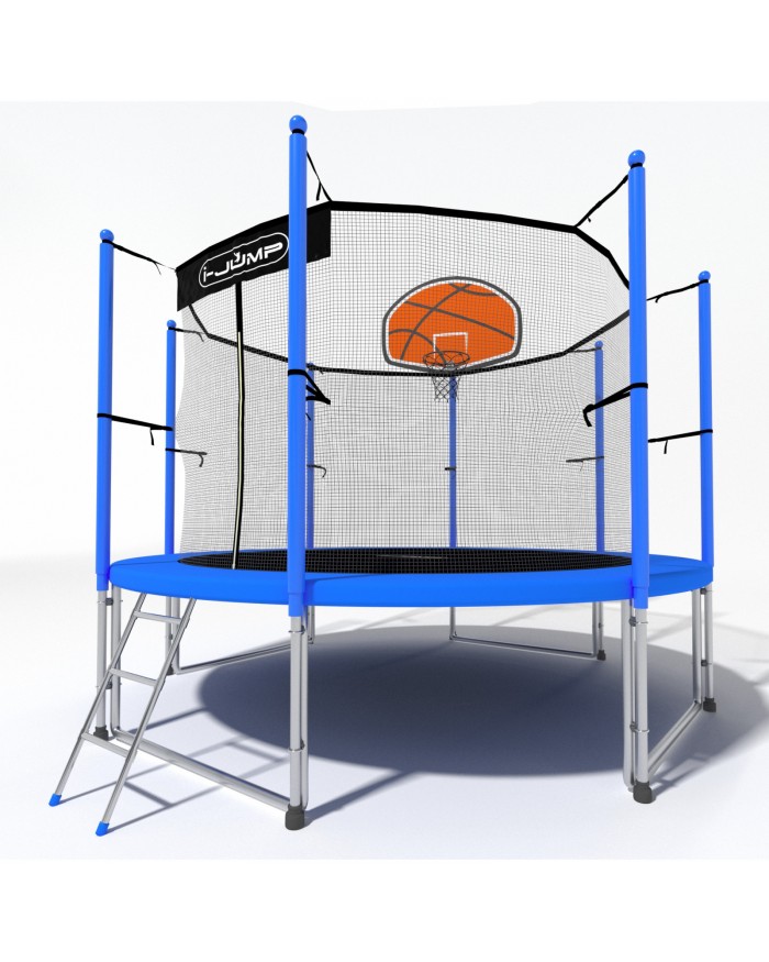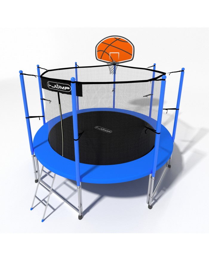 Батуты i-JUMP разработаны в соответствии с последними тенденциями в области безопасности и изготовлены из высококачественных материалов. Данный батут имеет сдвоенные опоры основания, обеспечивающие хорошую устойчивость. Прыжковое полотно сделано в США из полипропиленового мата Permatron с защитой от УФ излучения. Пружины имеют бочкообразную форму для правильного распределения сопротивления металла при растяжении. Все металлические части (опоры, пружины и прочее) изготовлены из оцинкованной стали для предотвращения коррозии. В комплекте есть баскетбольный щит.