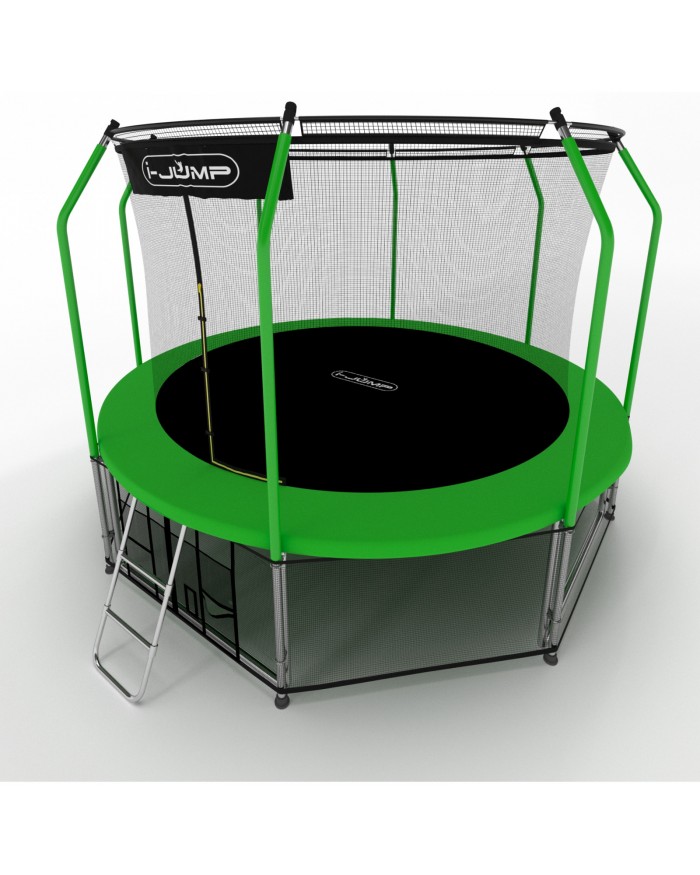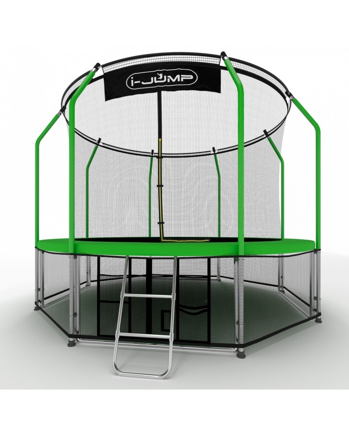 Батуты i-JUMP разработаны в соответствии с последними тенденциями в области безопасности и изготовлены из высококачественных материалов. Данный батут имеет сдвоенные опоры основания, обеспечивающие хорошую устойчивость. Прыжковое полотно сделано в США из полипропиленового мата Parmatron с защитой от УФ излучения. Пружины имеют бочкообразную форму для правильного распределения сопротивления металла при растяжении. Все металлические части (опоры, пружины и прочее) изготовлены из оцинкованной стали для предотвращения коррозии.