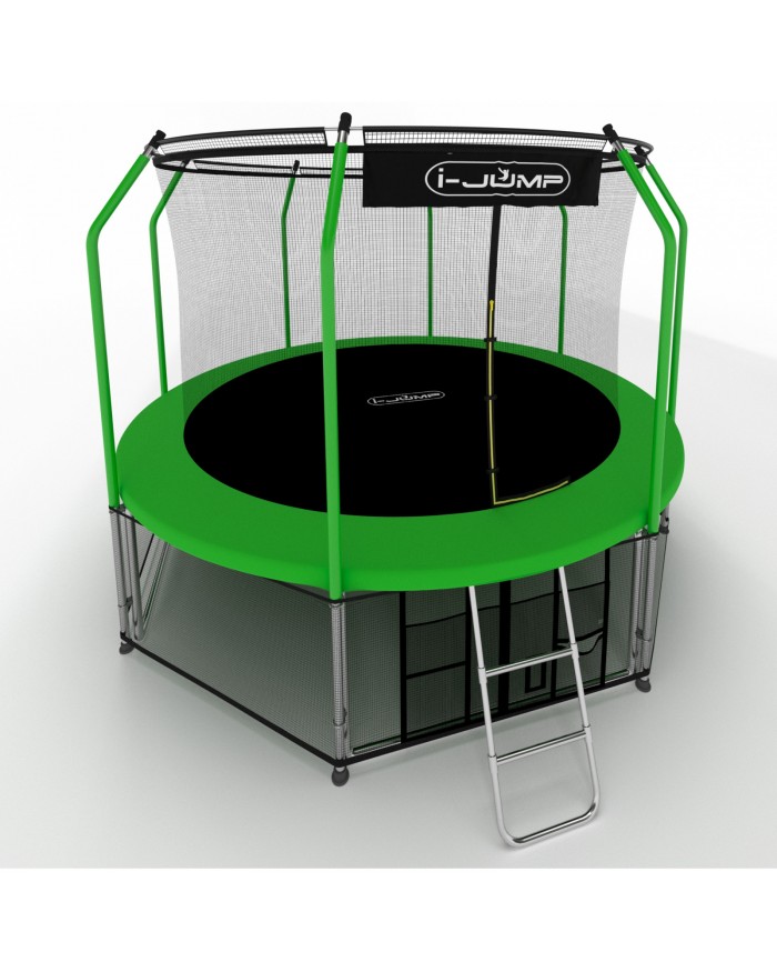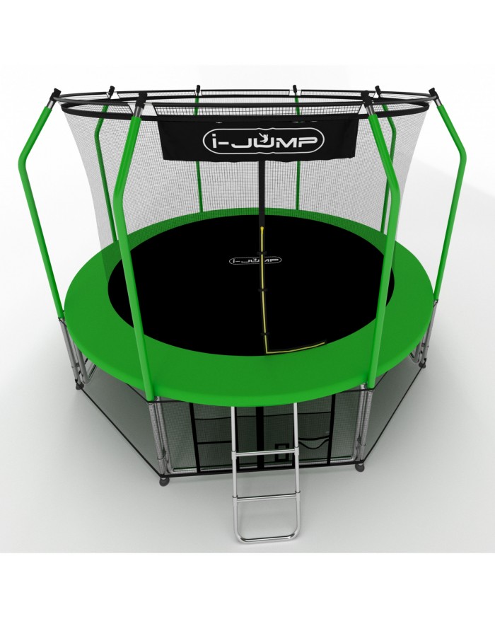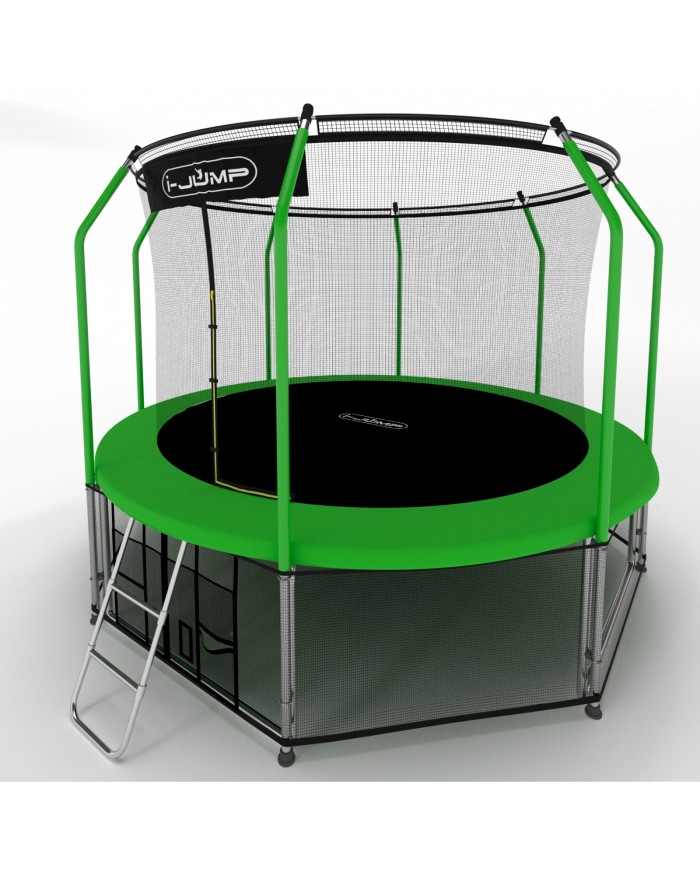 Батуты i-JUMP разработаны в соответствии с последними тенденциями в области безопасности и изготовлены из высококачественных материалов. Данный батут имеет сдвоенные опоры основания, обеспечивающие хорошую устойчивость. Прыжковое полотно сделано в США из полипропиленового мата Permatron с защитой от УФ излучения. Пружины имеют бочкообразную форму для правильного распределения сопротивления металла при растяжении. Все металлические части (опоры, пружины и прочее) изготовлены из оцинкованной стали для предотвращения коррозии.