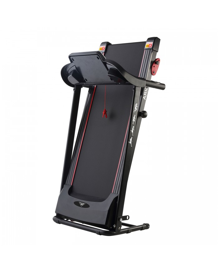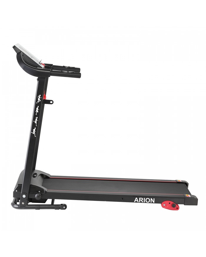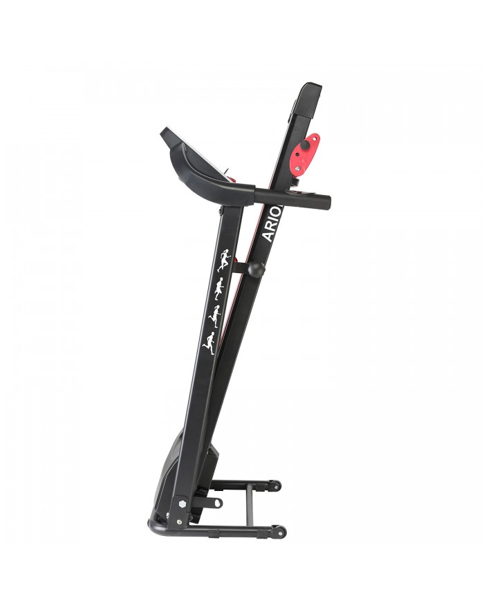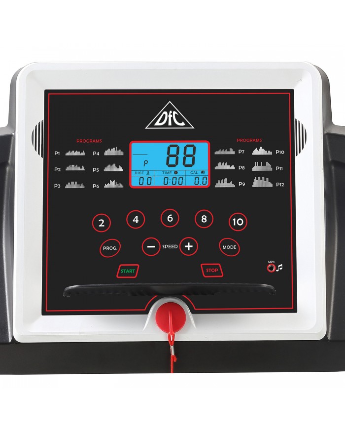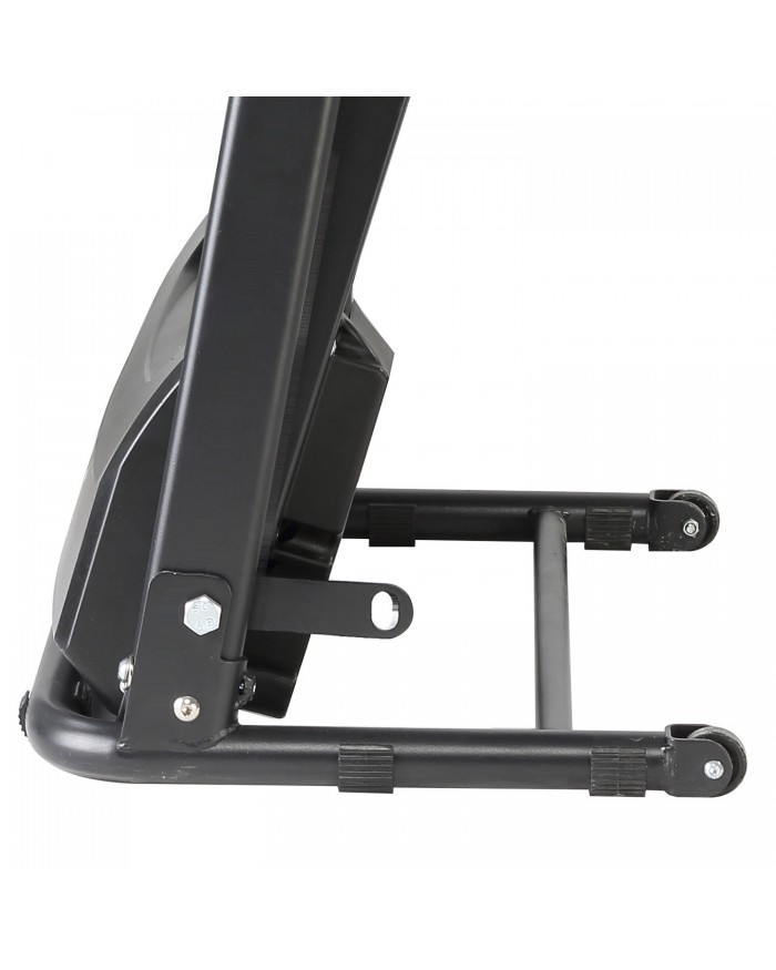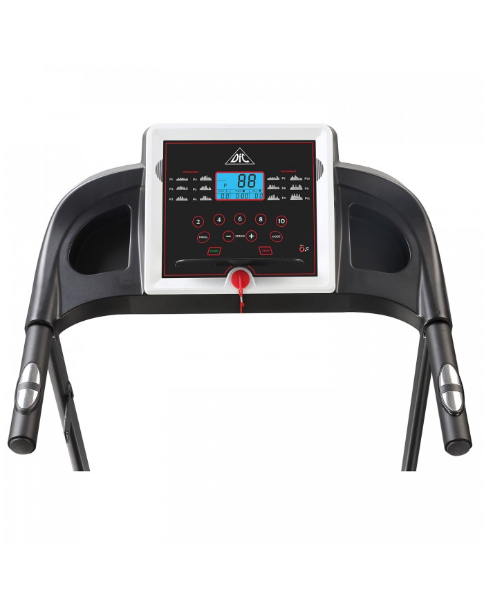 12 встроенных программ, ручная настройка параметров тренировки, а так же возможность регулировки угла наклона бегового полотна помогут разнообразить занятия на тренажере. Складная конструкция с помощью встроенного амортизатора позволяет поднять полотно после тренировки и экономить пространство до следущего занятия.