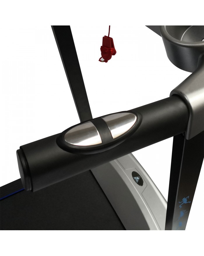 Консоль беговой дорожки оснащена LCD-дисплеем с голубой подсветкой, отображает всю необходимую пользователю информацию во время тренировки: скорость, время, дистанция, сжигаемые калории, пульс.