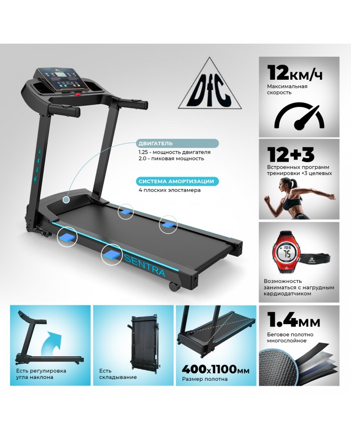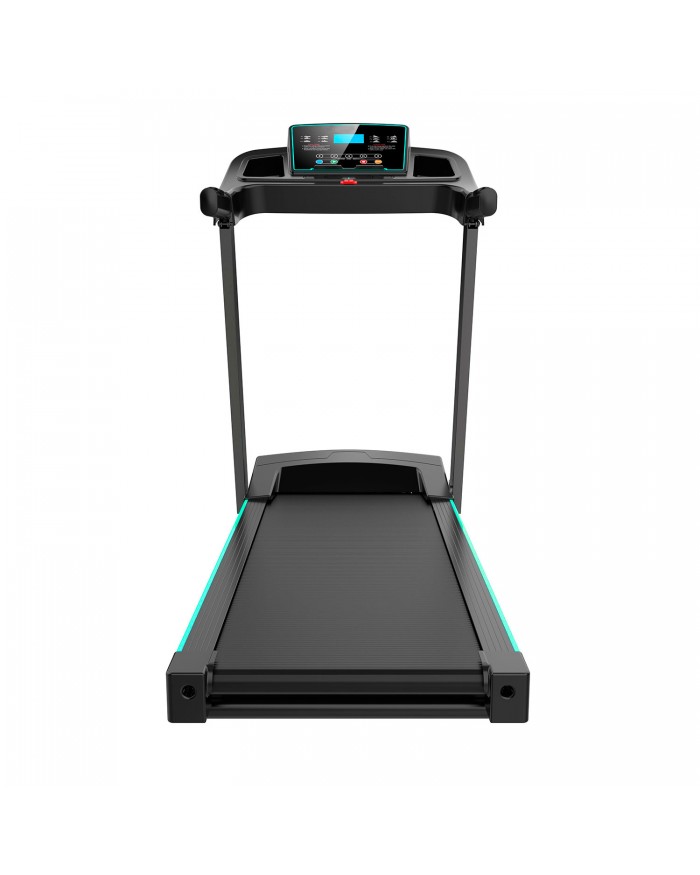 12 встроенных программ, ручная настройка параметров тренировки, а так же возможность регулировки угла наклона бегового полотна помогут разнообразить занятия на тренажере. Складная конструкция с помощью встроенного амортизатора позволяет поднять полотно после тренировки и экономить пространство до следущего занятия.