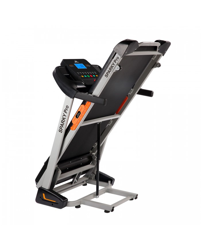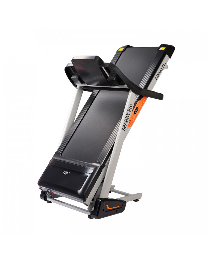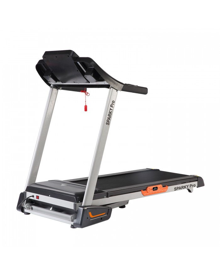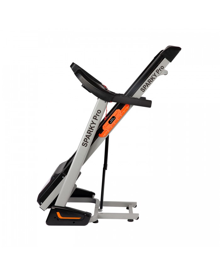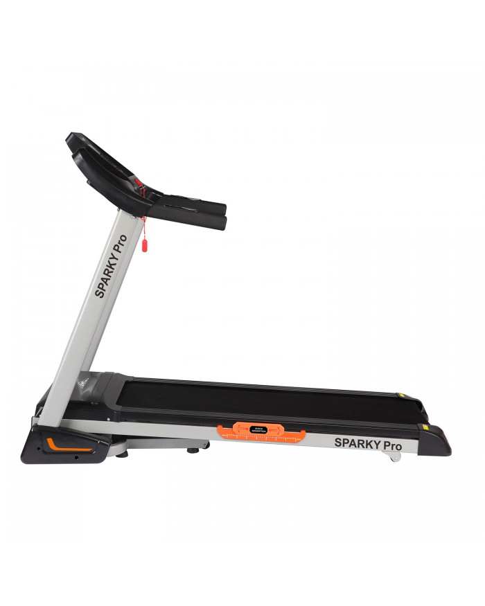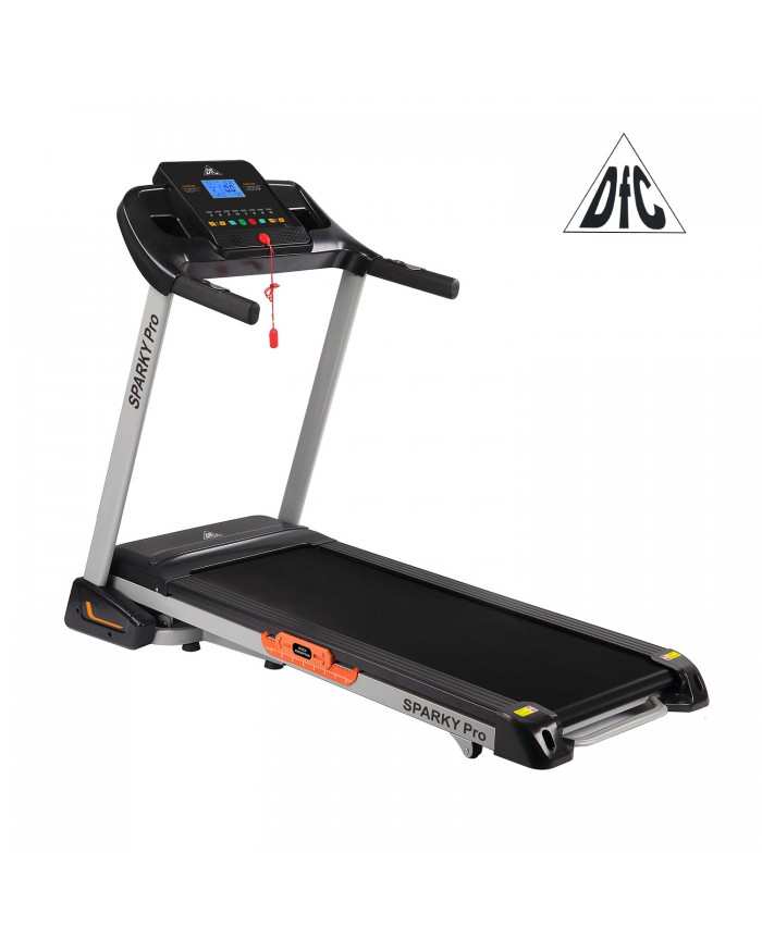 Домашняя электрическая дорожка DFC Sparky Pro T635 В своем арсенале дорожка имеет двигатель постоянного тока мощностью 2 л.с. Угол наклона бегового полотна изменяется с помощью дополнительного электромотора. Встроенные динамики звуковой системы и возможность подключения дополнительных устройств через разъем MP3 помогут провести тренировку под любимую мелодию. Два комплекта встроенных в поручни датчиков позволят следить за частотой сердечных сокращений.