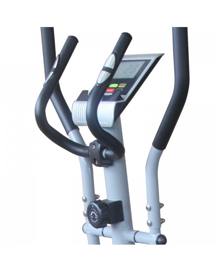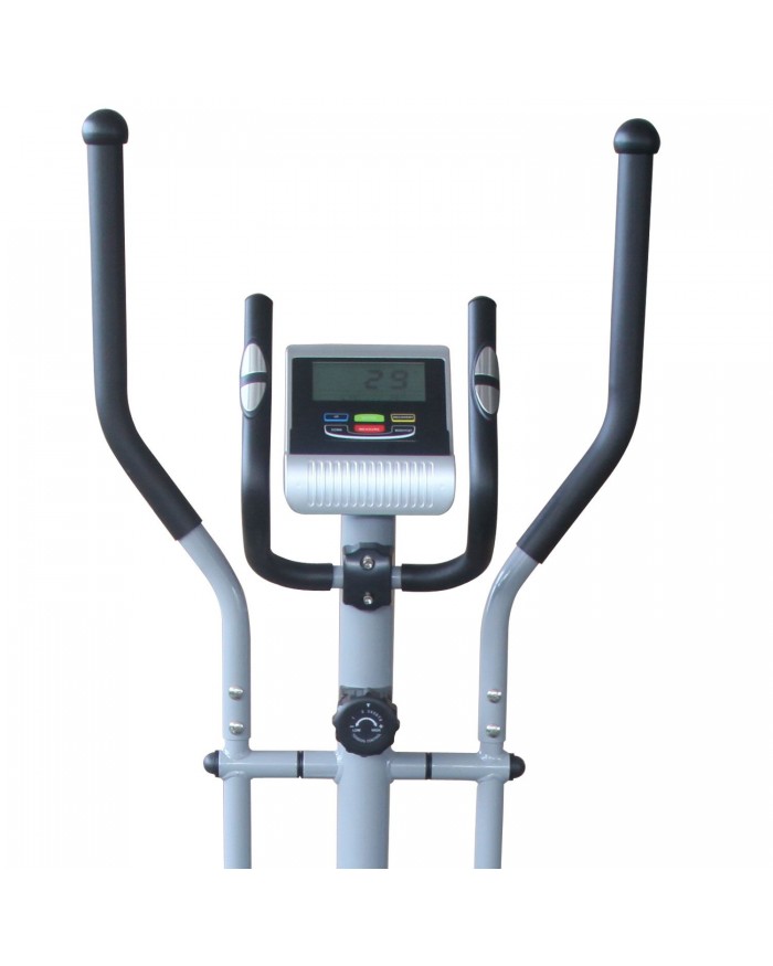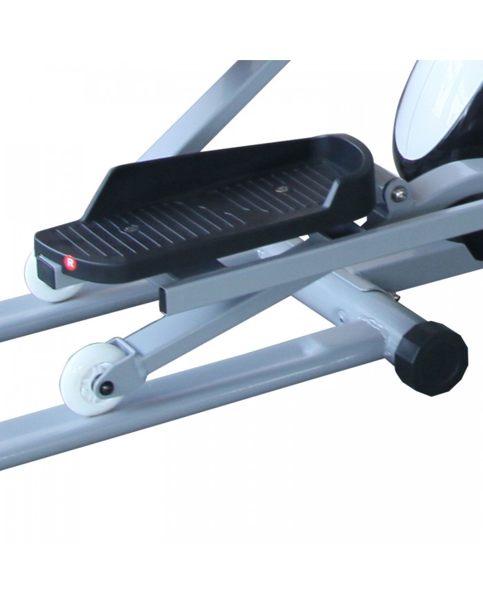 Эллиптический тренажер для домашнего использования с передним расположением маховика. Такое решение позволяет уменьшить расстояние между педалями. Движения при тренировке становятся естественными, уменьшается нагрузка на суставы. Запатентованная система двустороннего вращение маховика придает дополнительную плавность и более правильный ход педалей при занятии. Модель оснащена датчиками измерения сердечного ритма, расположенными на рукоятках. Тренажер также имеет держатель для планшета и транспортировочные ролики для легкого перемещения после тренировки.