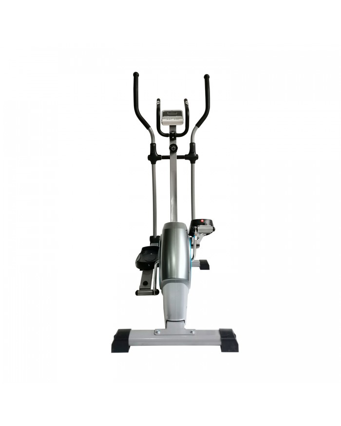 Среднегабаритный эллиптический тренажер для домашнего использования. Тренажер с высокоскоростным маховиком и магнитной системой нагружения. Механическая регулировка нагрузки, 8 фиксируемых положений нагрузки с помощью удобной ручки на стойке тренажера.