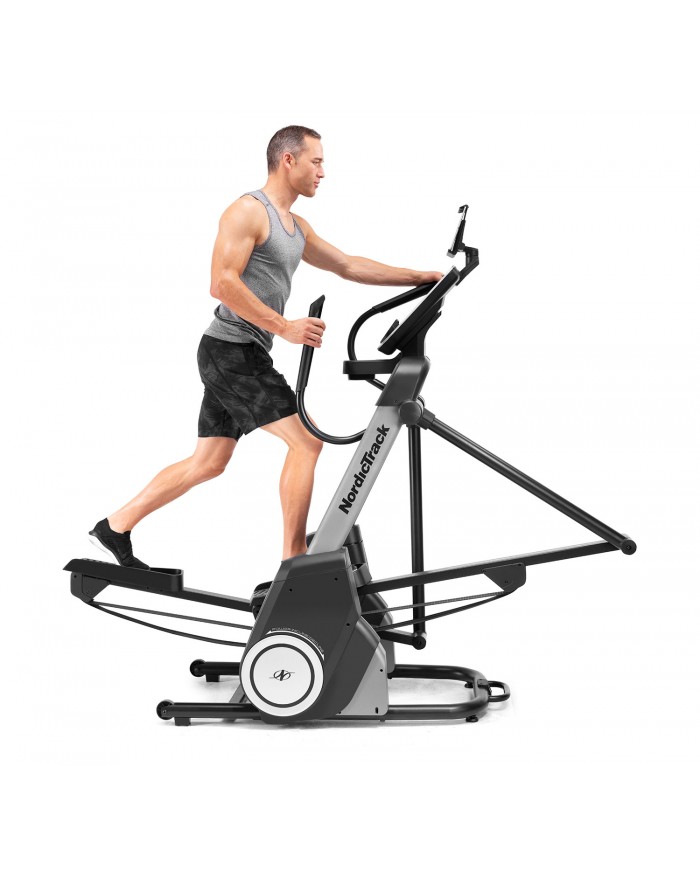 Удобный, современный тренажер NordicTrack FreeStrider FS5i понравится всем членам вашей семьи. Для большего комфорта он оснащен системой транспортировочных роликов, компенсаторами неровностей пола, вентилятором, а также подставками под гаджеты и бутылочку с водой.