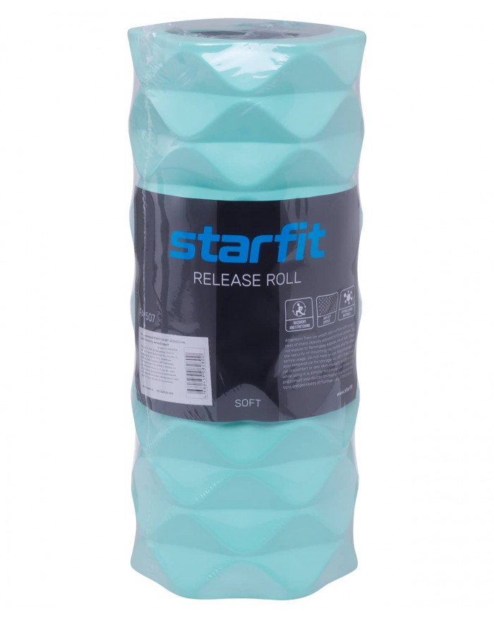 Ролик массажный низкой жесткости STARFIT FA-507, 32,5x12,5 cм выполнен из двух составных частей: EVA - низкой жесткости, верхняя поверхность ролика, создающая приятные тактильные ощущения, и полипропилена - внутренней части ролика, создающей основу жесткости массажного эффекта.