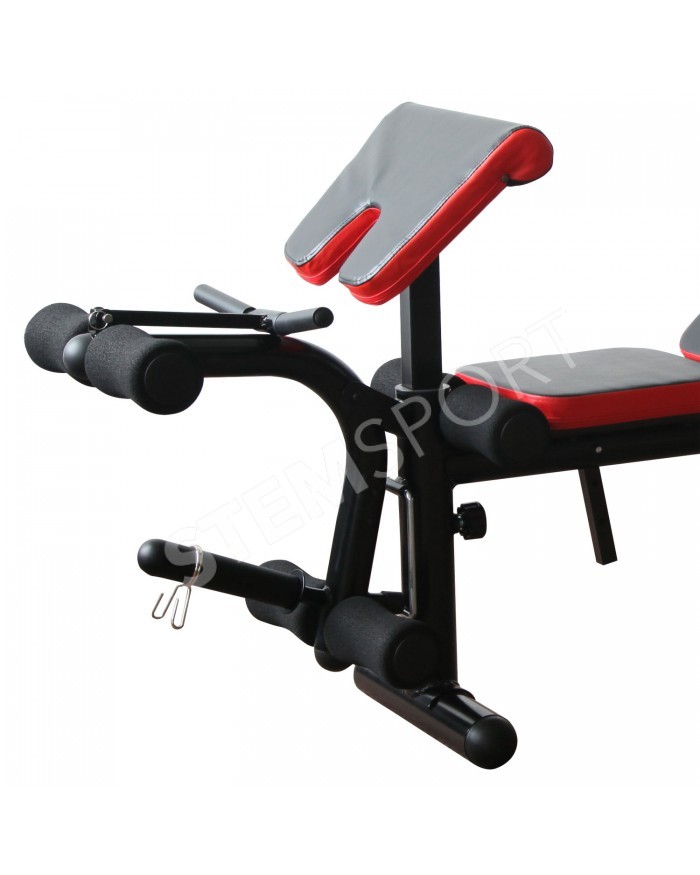 Упражнения: жим лежа, сгибание и разгибание ног в коленном суставе, парта для бицепсов.