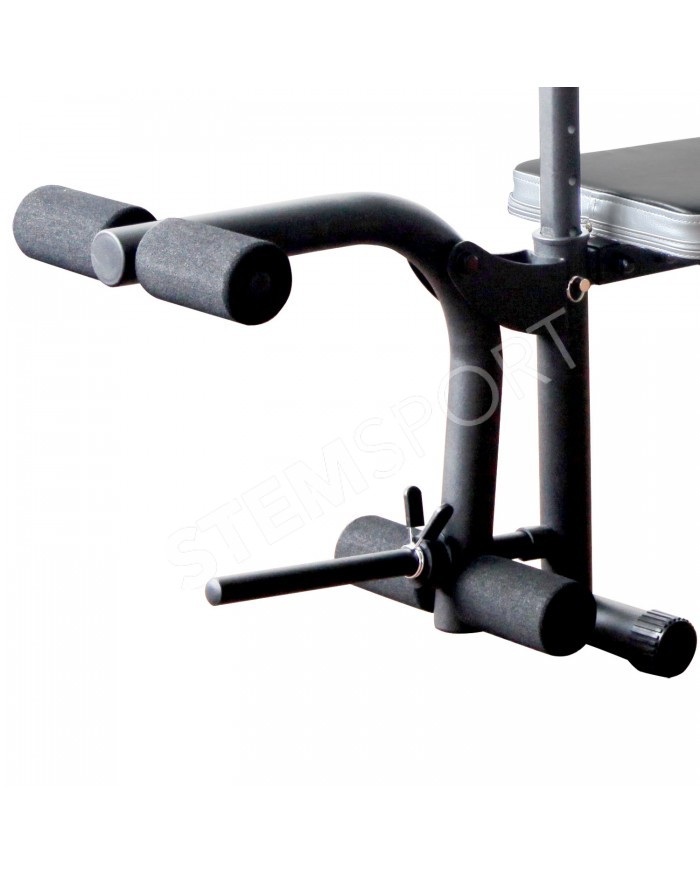 Позволяет выполнять следующие упражнения: жим лежа, сгибание и разгибание ног в коленном суставе, парта для бицепсов.