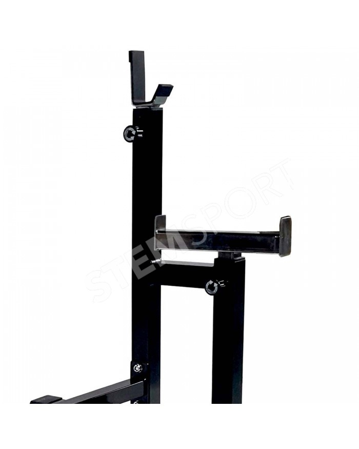 Стойки под штангу возможно установить на расстоянии 70 или 123 см друг от друга, и регулируются по высоте в диапазоне от 85 до 111 см.