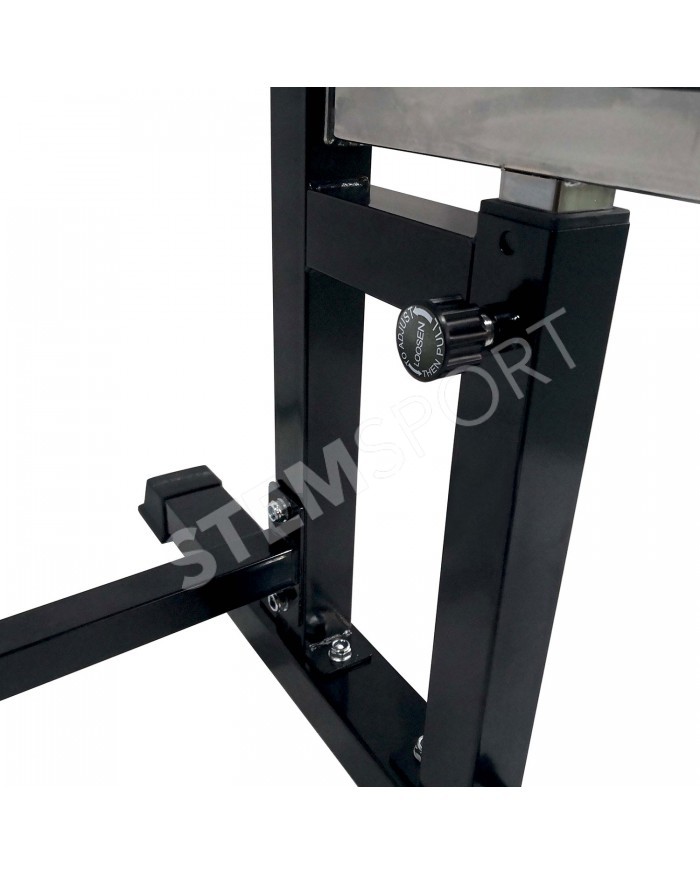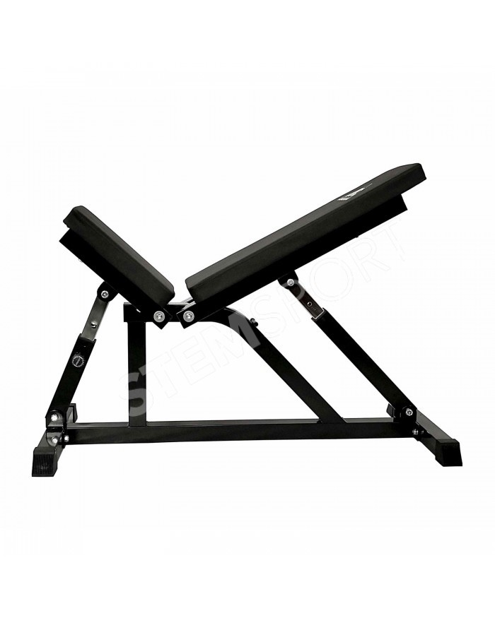 Сиденье и спинка скамьи регулируется по углу наклона в широком диапазоне. Фиксация в нужном положении с помощью удобной подпружиненной ручки.