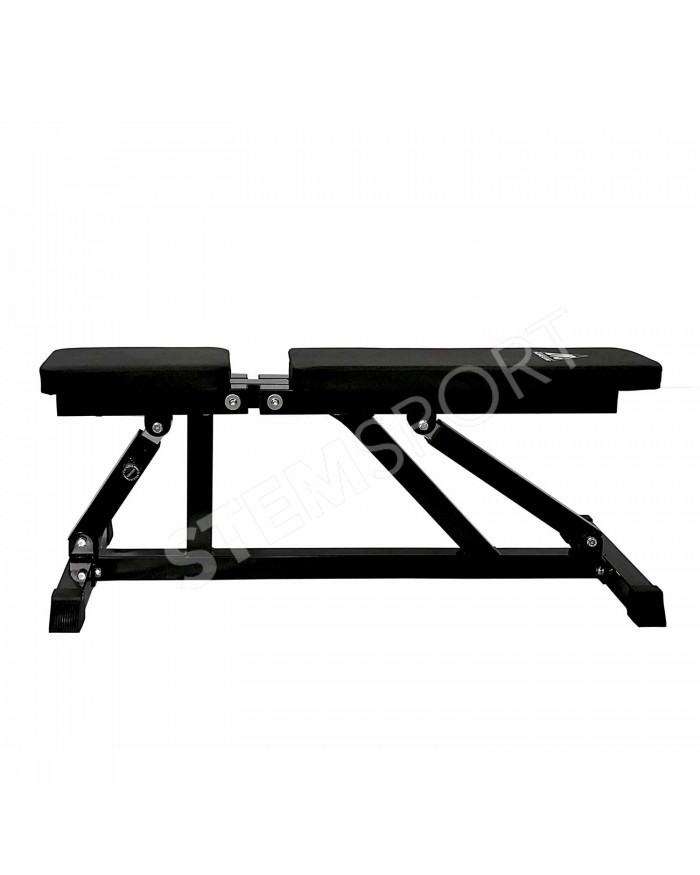 Сиденье и спинка скамьи регулируется по углу наклона в широком диапазоне. Фиксация в нужном положении с помощью удобной подпружиненной ручки.