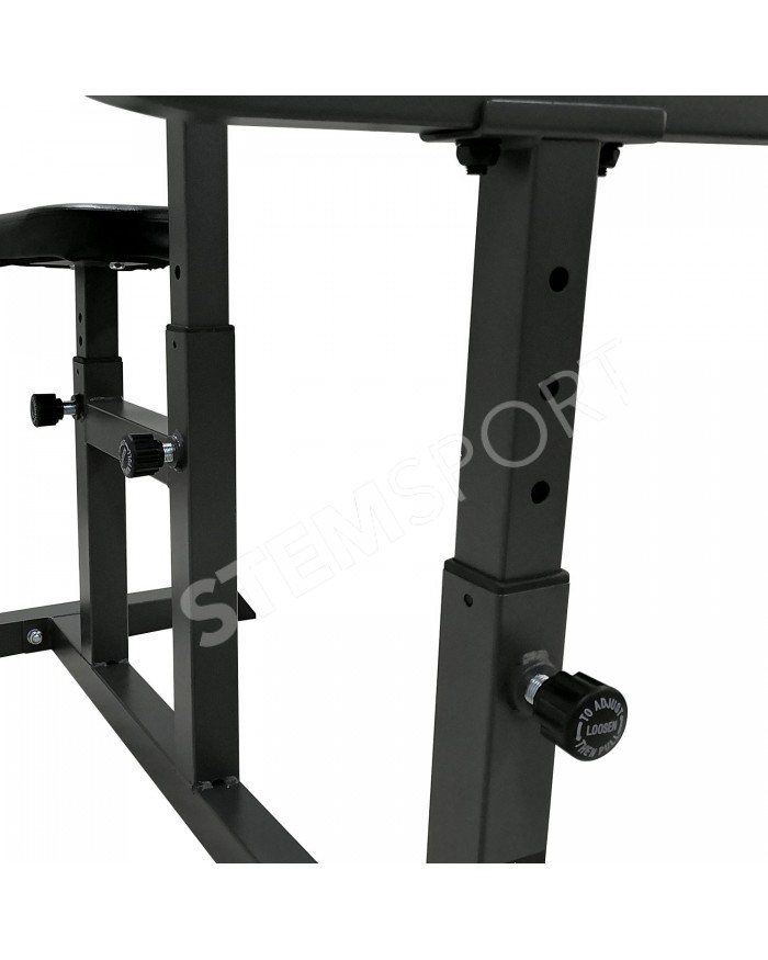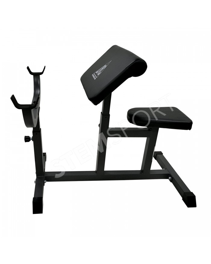 Сиденье, парта для бицепса и стойки под штангу регулируются по высоте. 4 уровня регулировки.