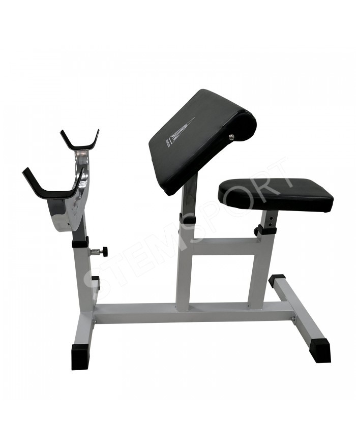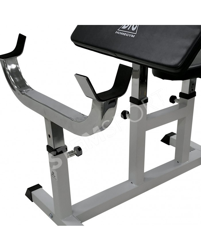 Сиденье, парта для бицепса и стойки под штангу регулируются по высоте. 4 уровня регулировки.
