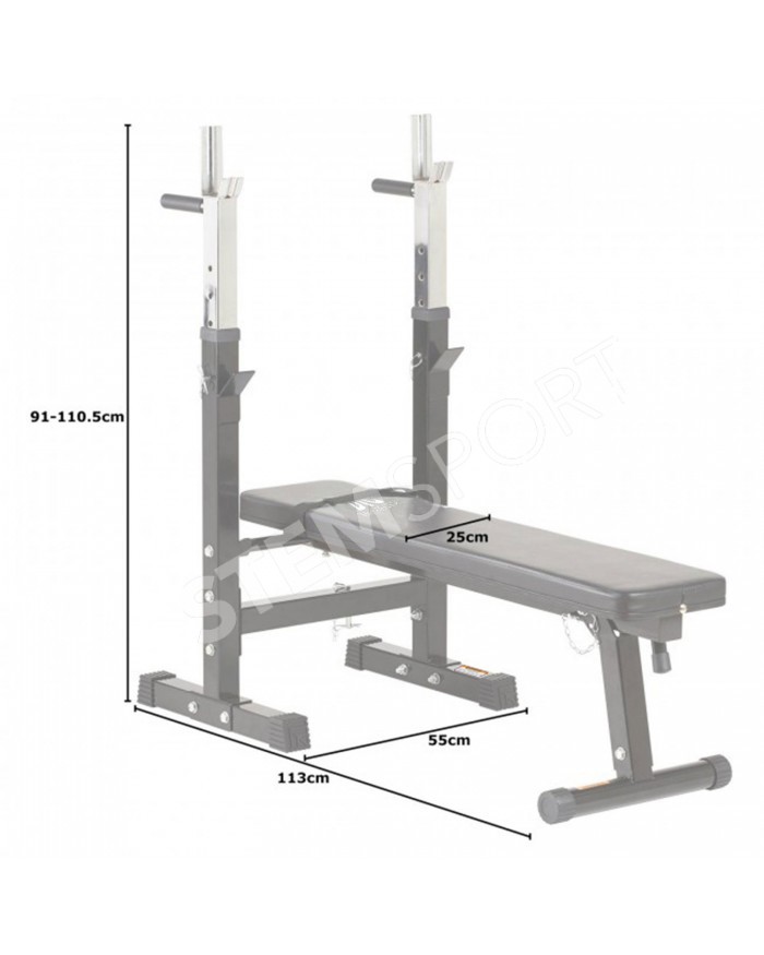 Скамья силовая со стойками под штангу. Предназначена для выполнения различных упражнений:
