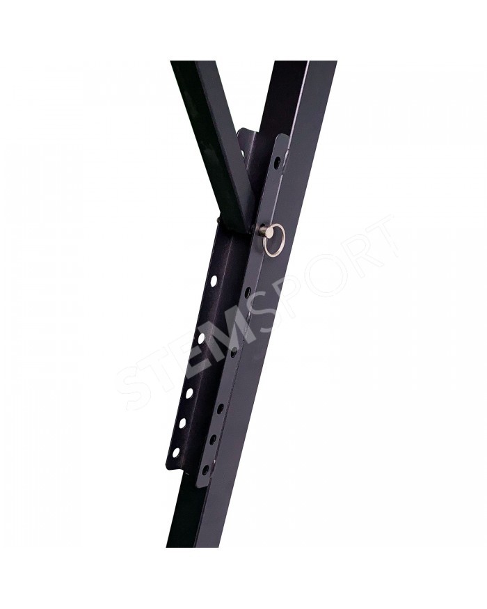 Скамья имеет складную конструкцию с фиксацией собранного положения с помощью 2 штырей с кольцом.