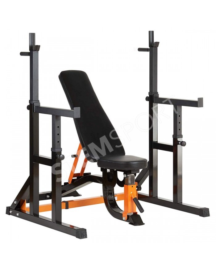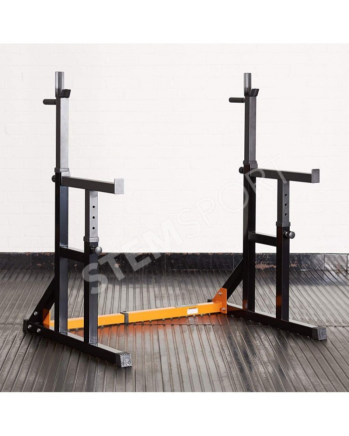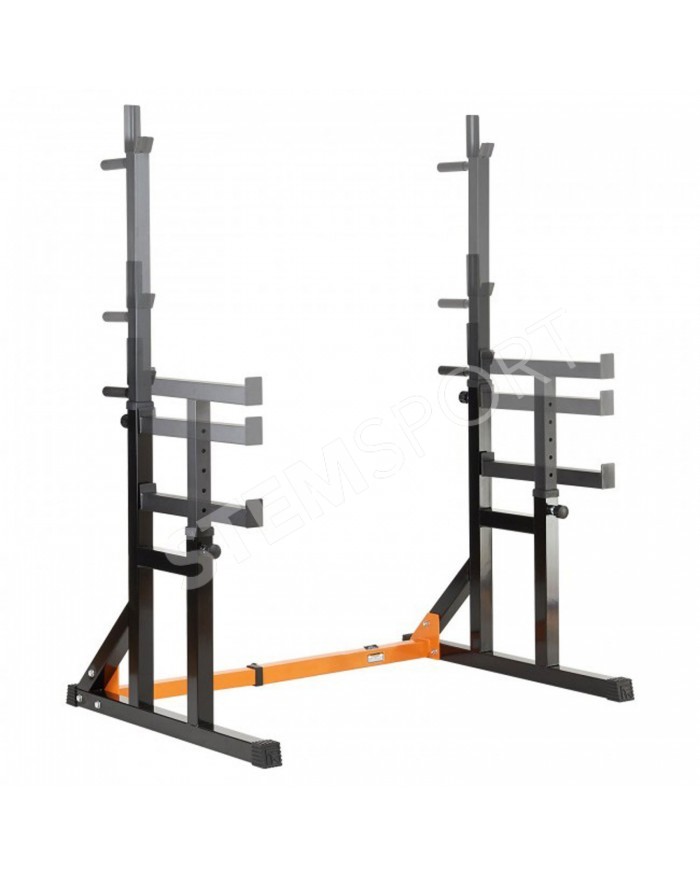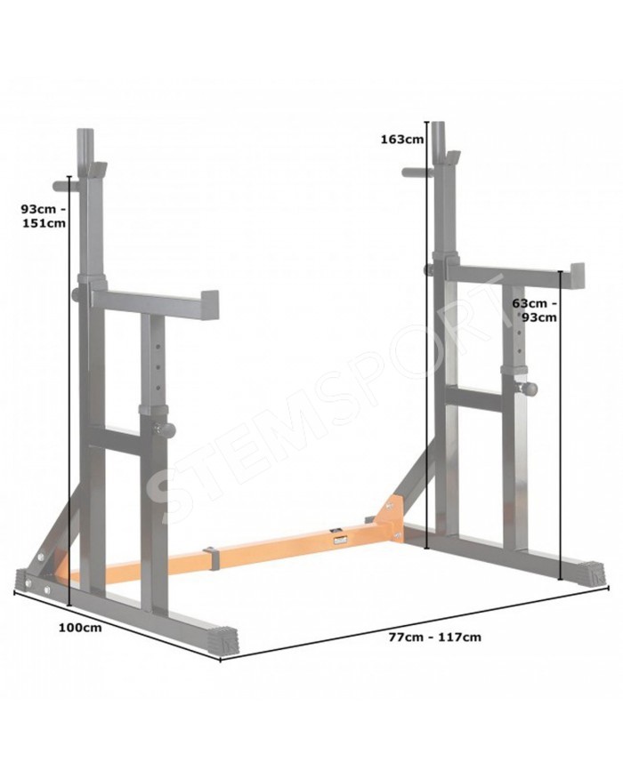 Стойки под штангу регулируются по ширине на расстоянии от 77 до 117 см друг от друга. 10 уровней с шагом 5 см.