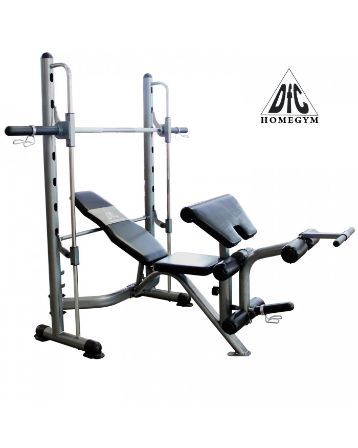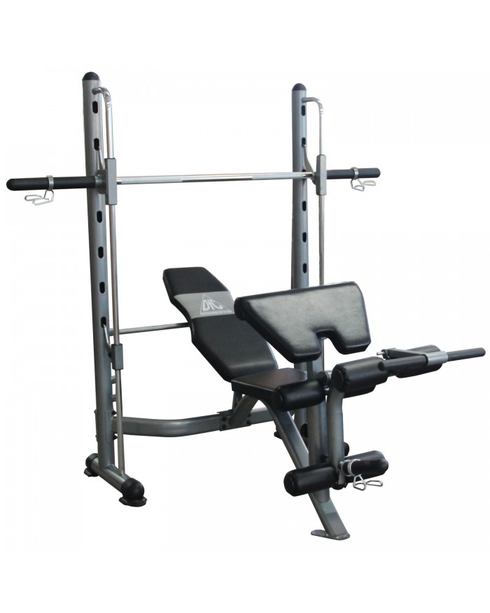 Скамья со спинкой позволяет отрегулировать угол наклона. Тренажер имеет в комплекте парту для бицепса и сгибатель/разгибатель ног.