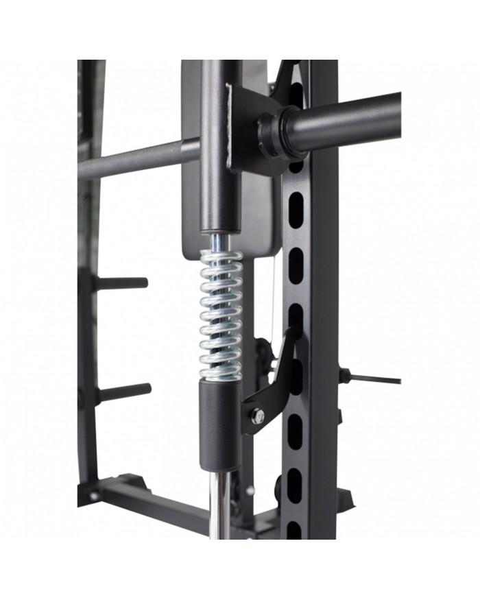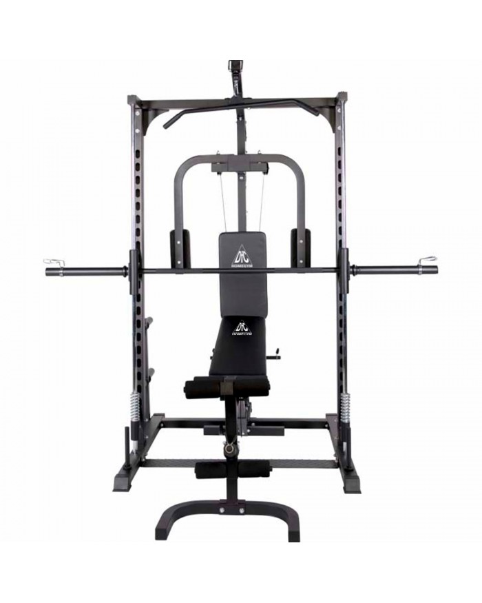Многофункциональный силовой тренажер на базе Машины Смита. Специально разработан, чтобы на небольшой площади предоставить большой выбор упражнений на различные группы мышц. Позволяет выполнить силовую тренировку без партнера и укрепить мышцы на ногах, ягодцах, животе, шее и груди.