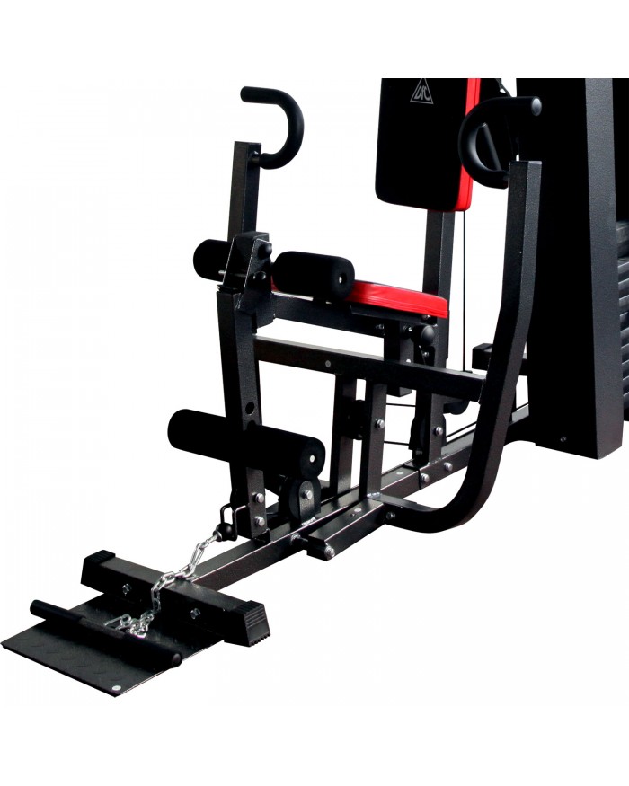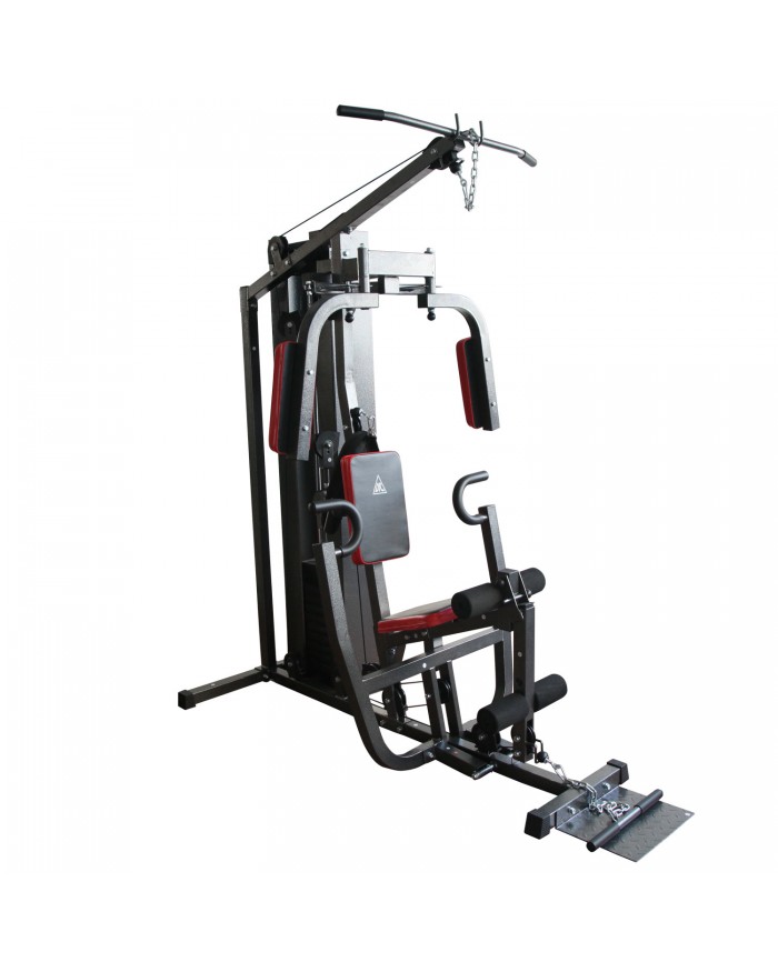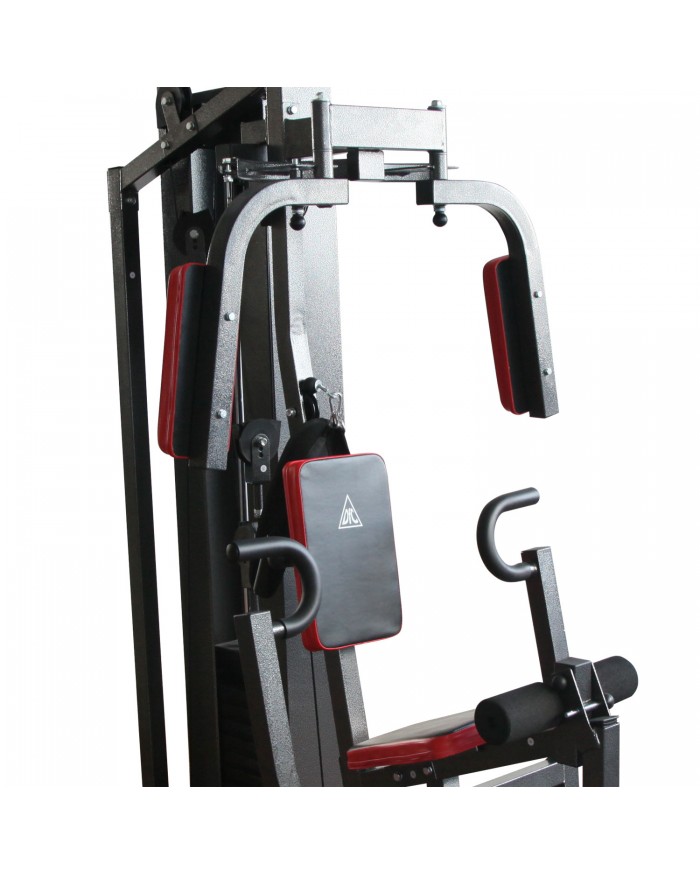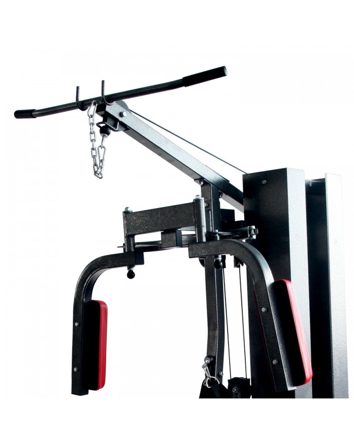 Многофункциональный тренажер с встроенным весовым стеком. Позволяет выполнять комплекс упражнений на различные группы мышц. Весовой стек закрыт защитным кожухом и имеет общую массу 50 кг, в комплекте 10 плит по 5 кг. Ролики на подшипниках обеспечивают плавное движение. Весовой стек имеет защитный кожух для безопасности пользователя. Стальной трос в защитной оплетке так же гарантирует безопасность при выполнении упражнений. Тренажер имеет мощную раму из металлического профиля с порошковой окраской в нейтральный серый цвет, который гармонично впишется в любой интерьер. Дополнительные аксессуары в комплекте помогают сделать упражнения более разнообразными. Упражнения: баттерфляй, нижняя и верхняя тяги, жим от груди и другие.