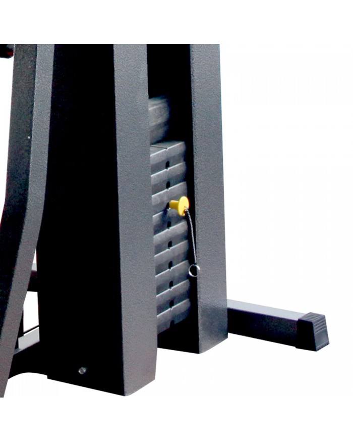Весовой стек закрыт защитным кожухом и имеет общую массу 50 кг, в комплекте 10 плит по 5 кг.