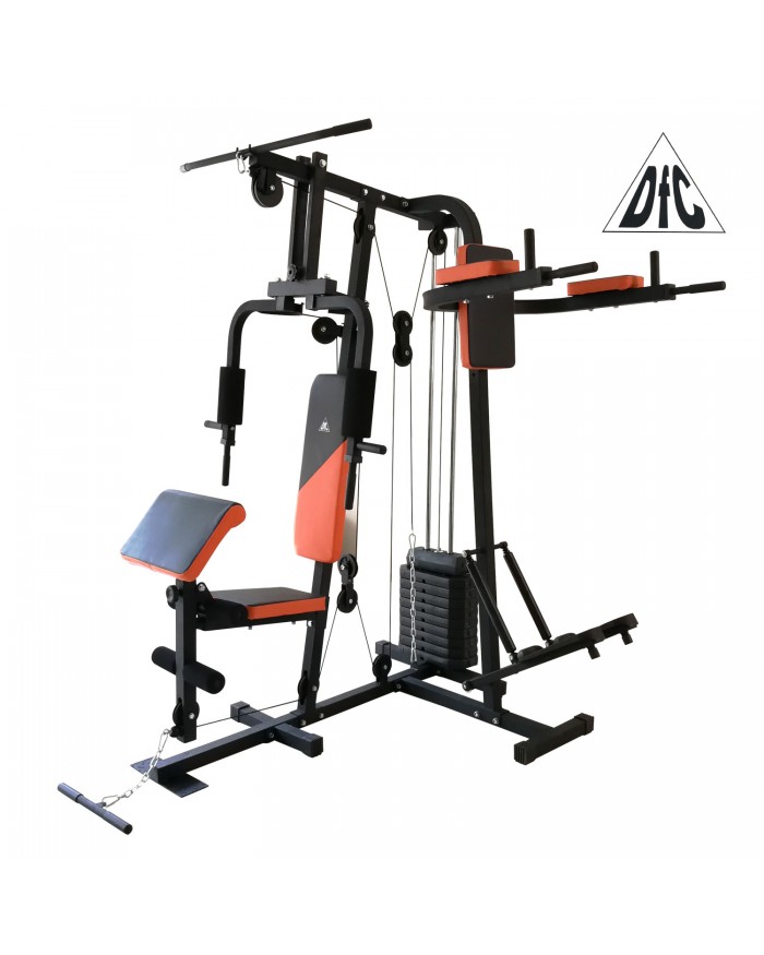 - Силовой комплекс DFC D7002 рассчитан на домашние занятия, поскольку позволяет эффективно тренировать сразу несколько групп мышц без участия профессионального инструктора.