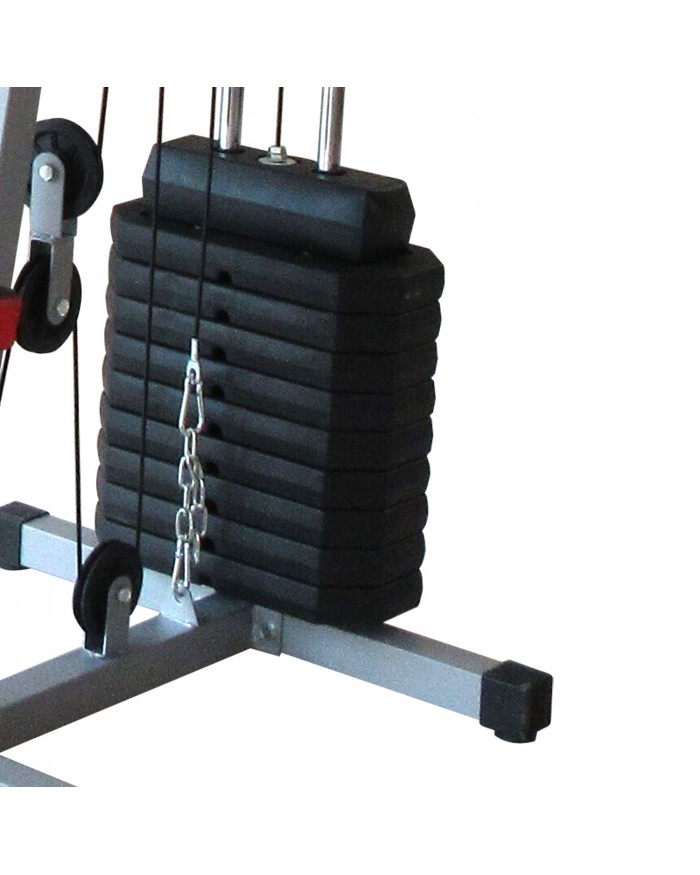 - Модель, укомплектованная дополнительными аксессуарами, позволяет выполнять самые разнообразные силовые упражнения, включая верхнюю и нижнюю тяги, баттерфляй, жим от груди, разгибание ног, качание пресса и др.