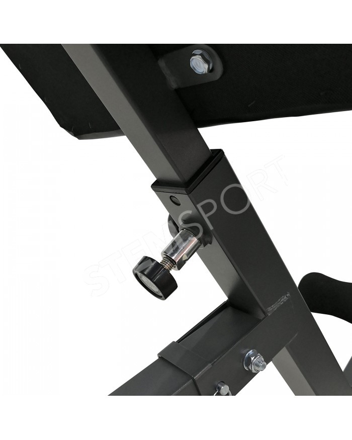 Регулируемая высота тренажера позволяет подобрать оптимальное положение для тренировки людям разного роста.