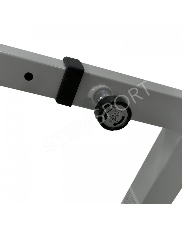 Регулируемая высота тренажера позволяет подобрать оптимальное положение для тренировки людям разного роста.