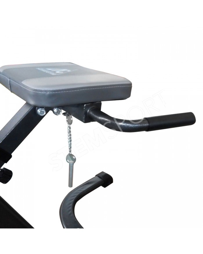 Регулировка спинки с рукоятками для упора по высоте и углу наклона позволяет заниматься людям разного роста и выполнять разнообразные упражнения.