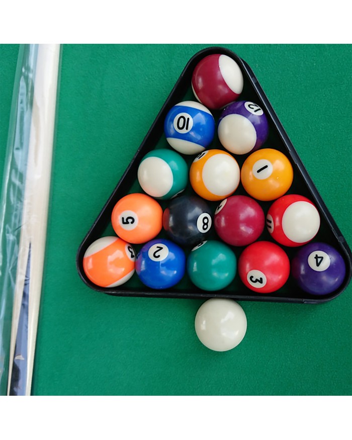 В комплекте все необходимые акссесуары: 2 кия, набор шаров для пула, треугольник, щетка, 2 мела.