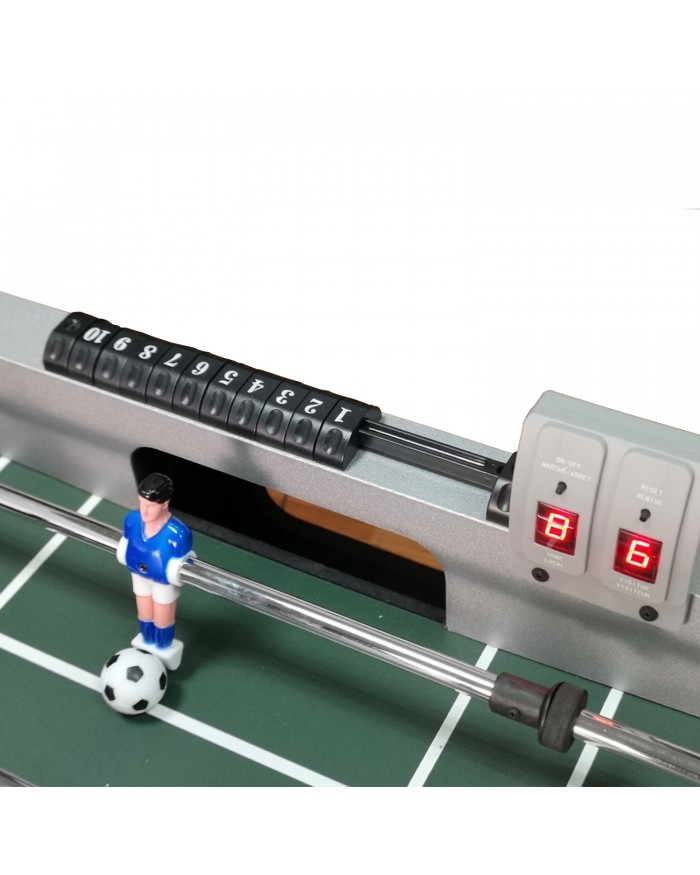 Стол оборудован электронным табло для подсчета забитых шайб. Дополнительно возле ворот каждого игрока установлен механический счетчик.