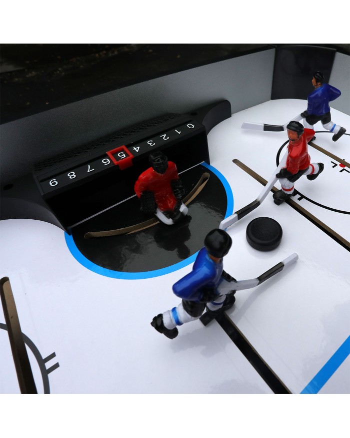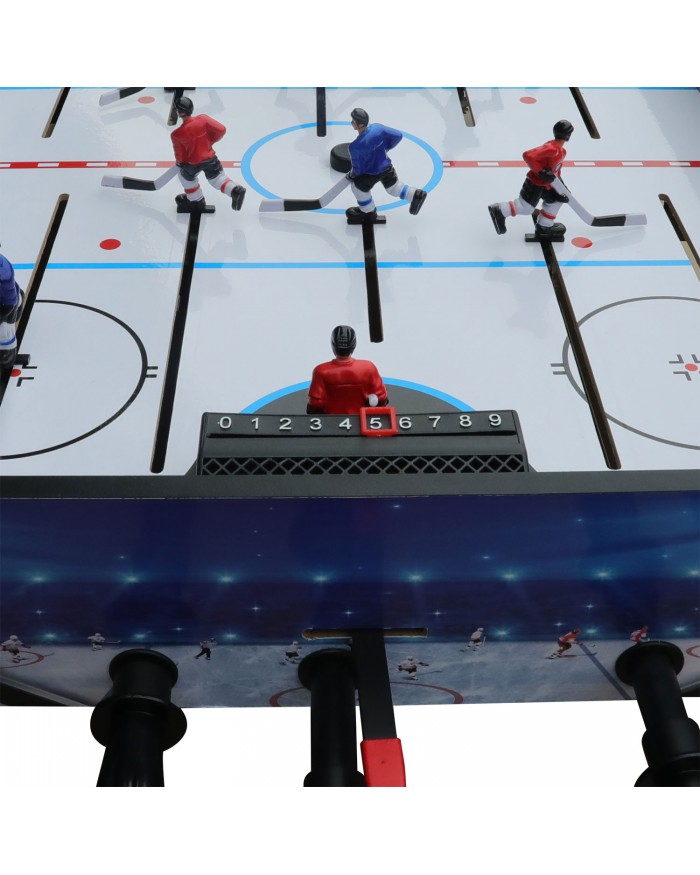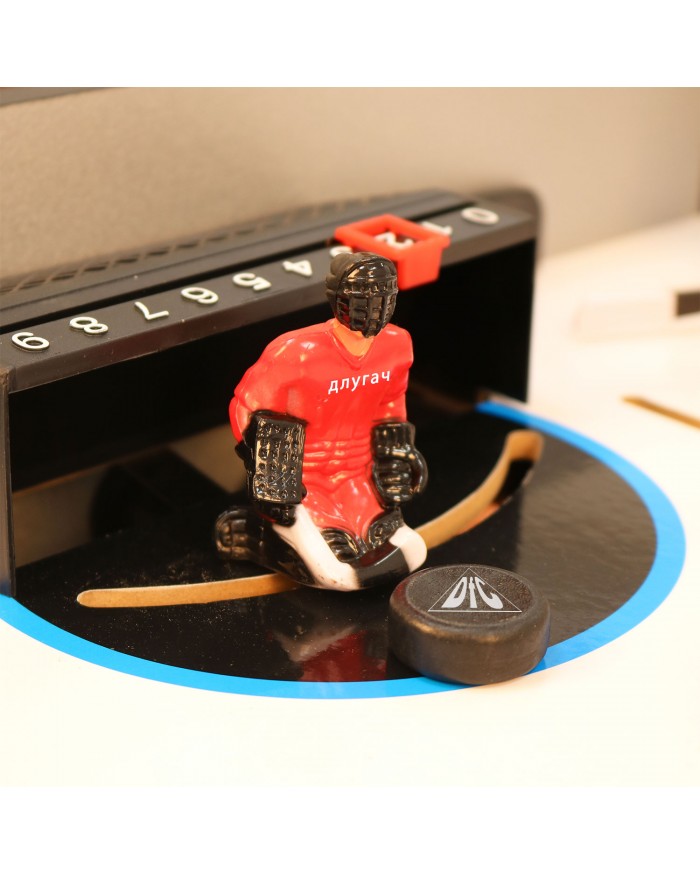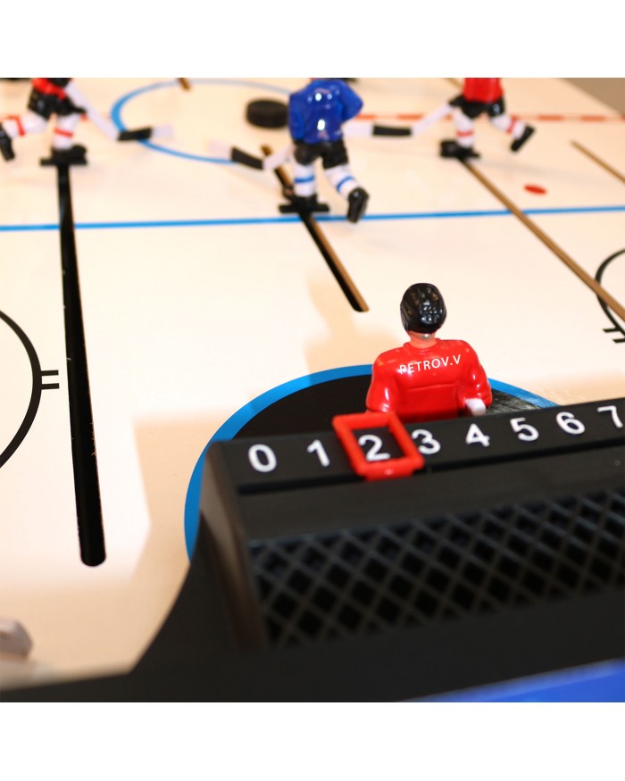 На столе напротив каждого игрока установлен механический счетчик для подсчета забитых шайб.