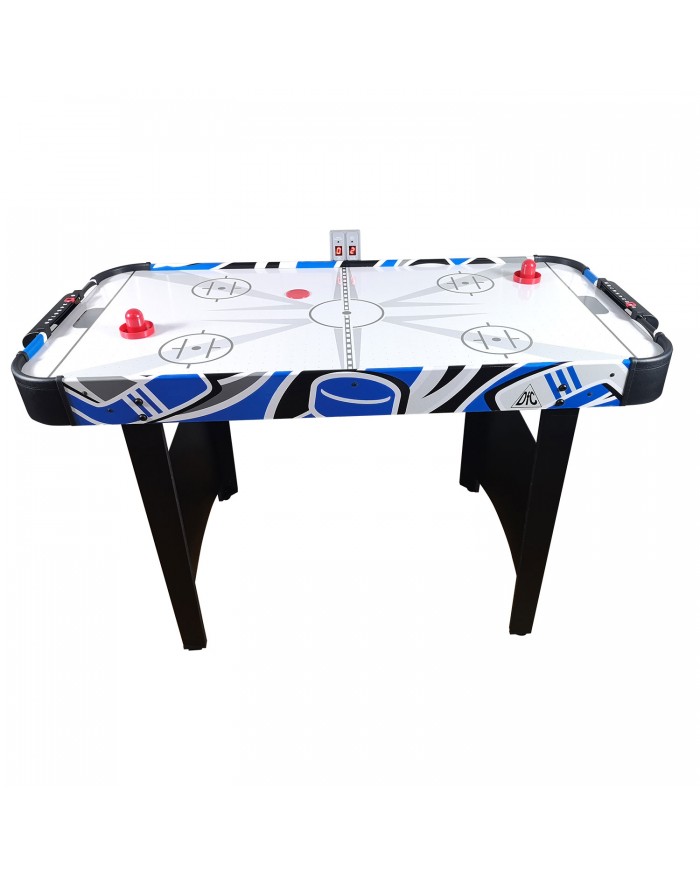 Стол комплектуется необходимым для игры набором аксессуаров: 2 биты и 2 шайбы красного цвета.